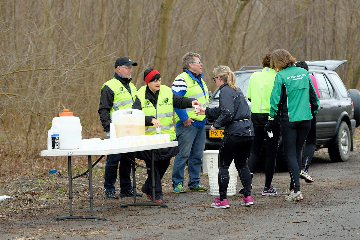 - Væske- og slik forplejning undervejs (½ maraton og 10 km)