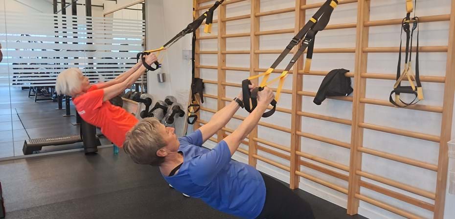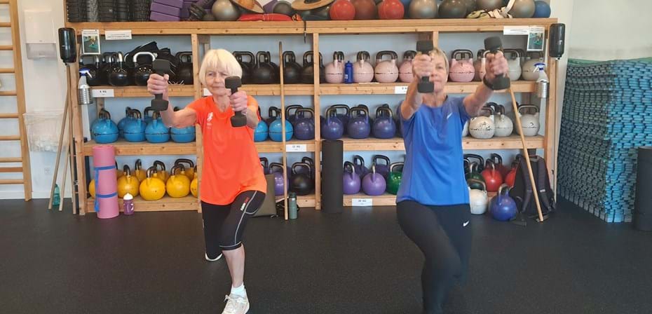 Om vinteren træner vi indendørs i Viking fitness, mens så snart vejret tillader det, rykker vi udendørs i haven.
