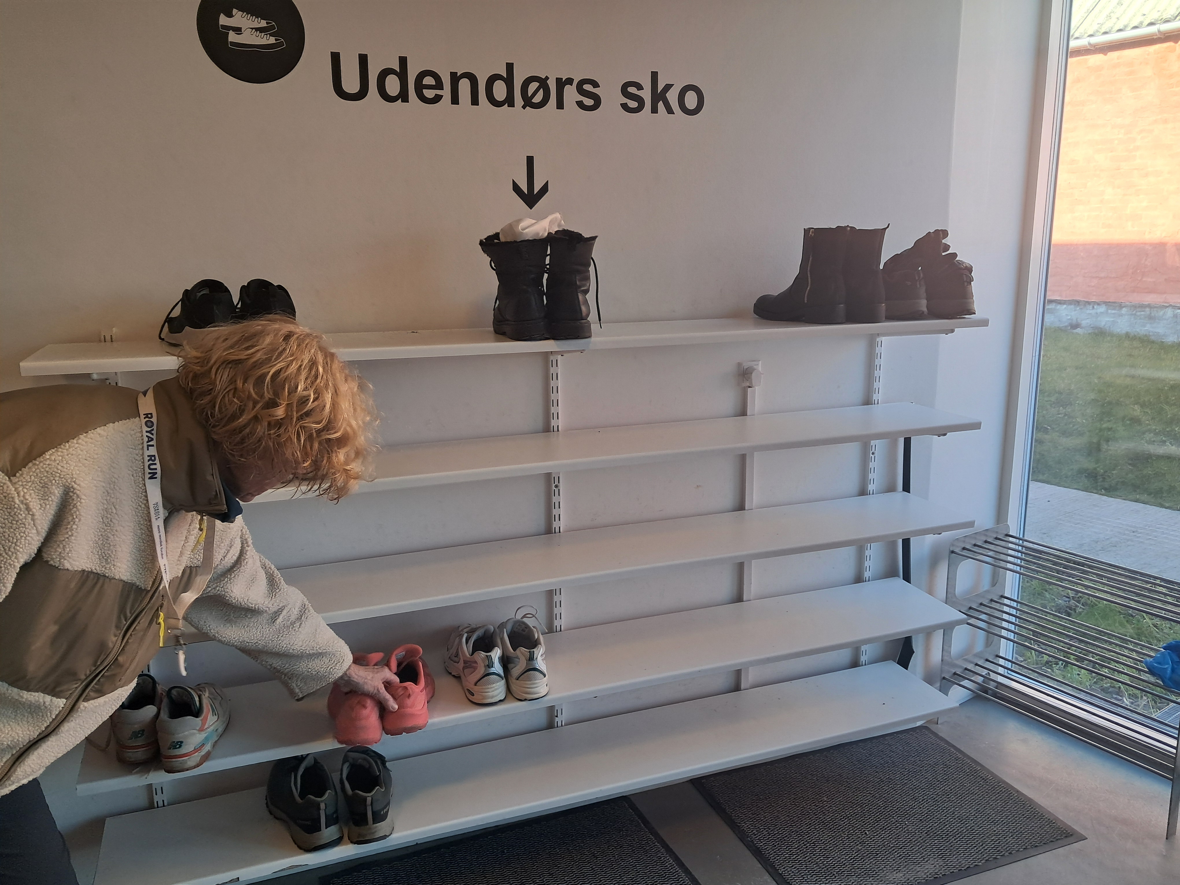 - Du må kun bruge INDENDØRSSKO i bygningen. Udendørssko skal aftages i entre. Beskidte sko sviner på gulvet og kan beskadige vores maskiner.