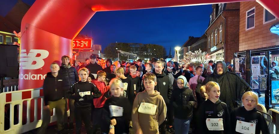 - Online tilmeldte (altså tilmeldte på forhånd) henter startnummer ved startstedet på Store Torv fra kl. 12