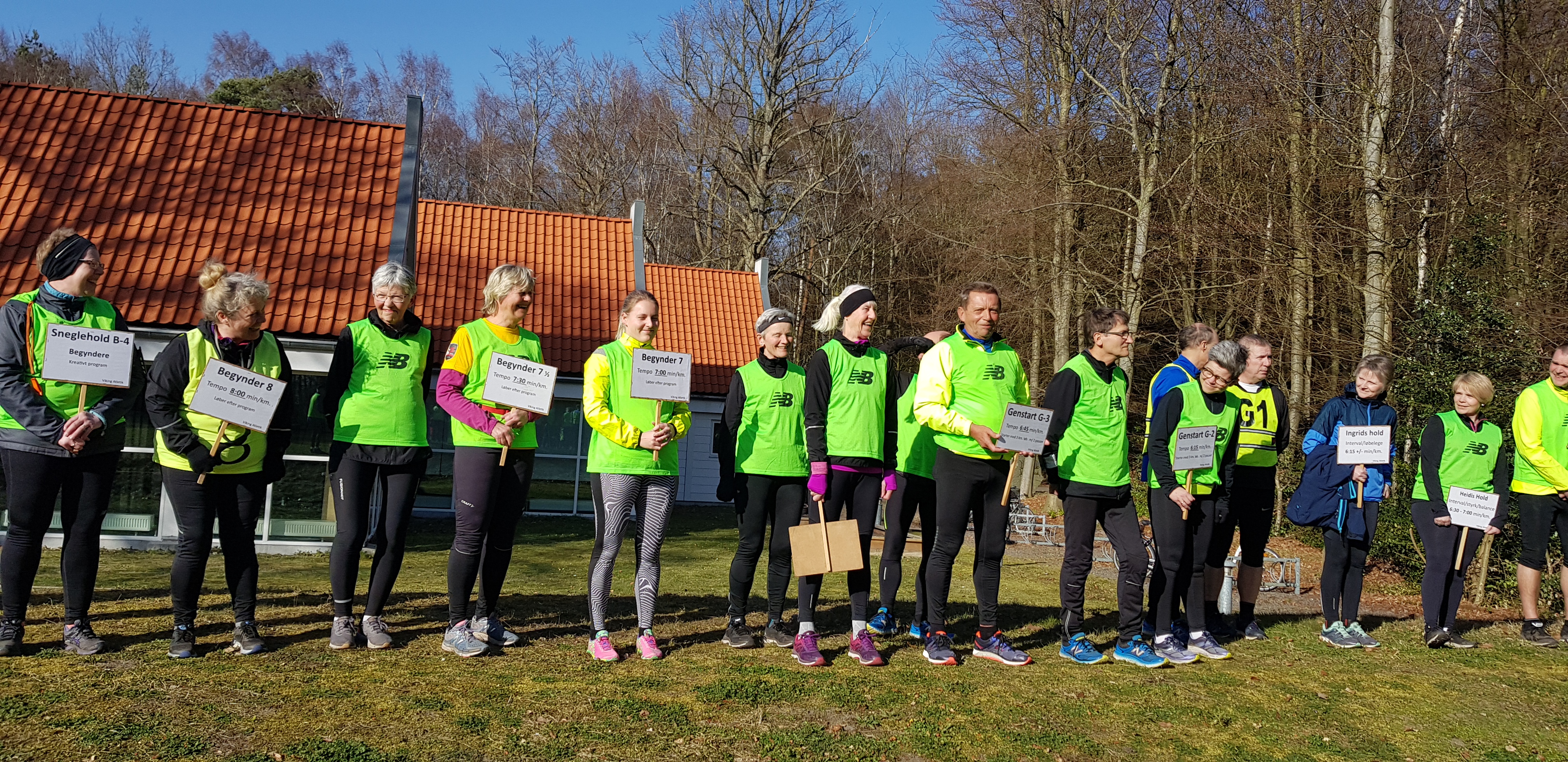 trænere er Britta, Poul, Jeanette og Else M. Ca. 8½ - 9 min. pr. km. Tirsdag og lørdag (torsdag selvtræning). Løber efter begynder programmet. Målet efter 12 uger er 3 km.