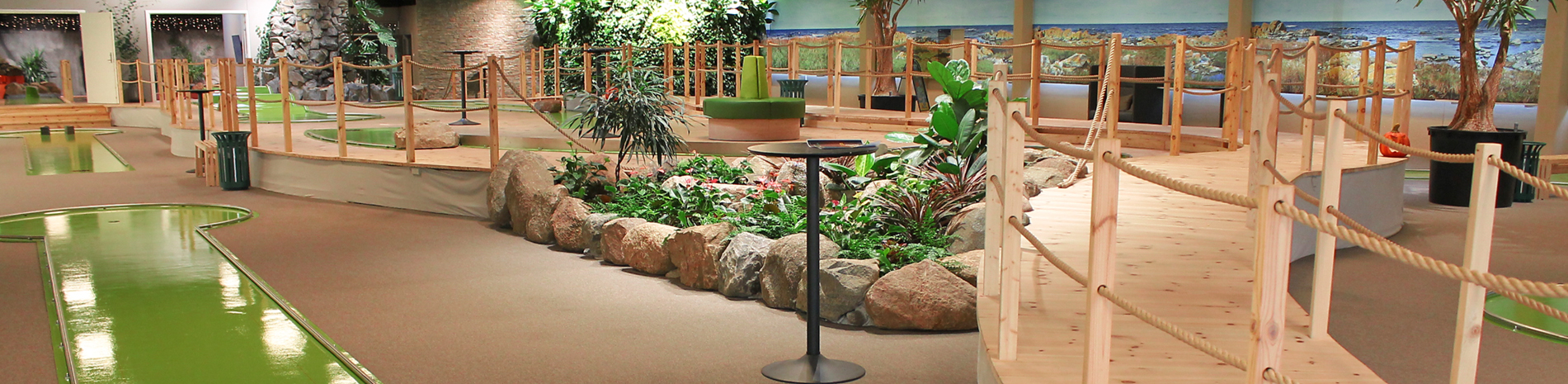 En runde minigolf, en halv liter fadøl og en valgfri burger med fritter og dip.