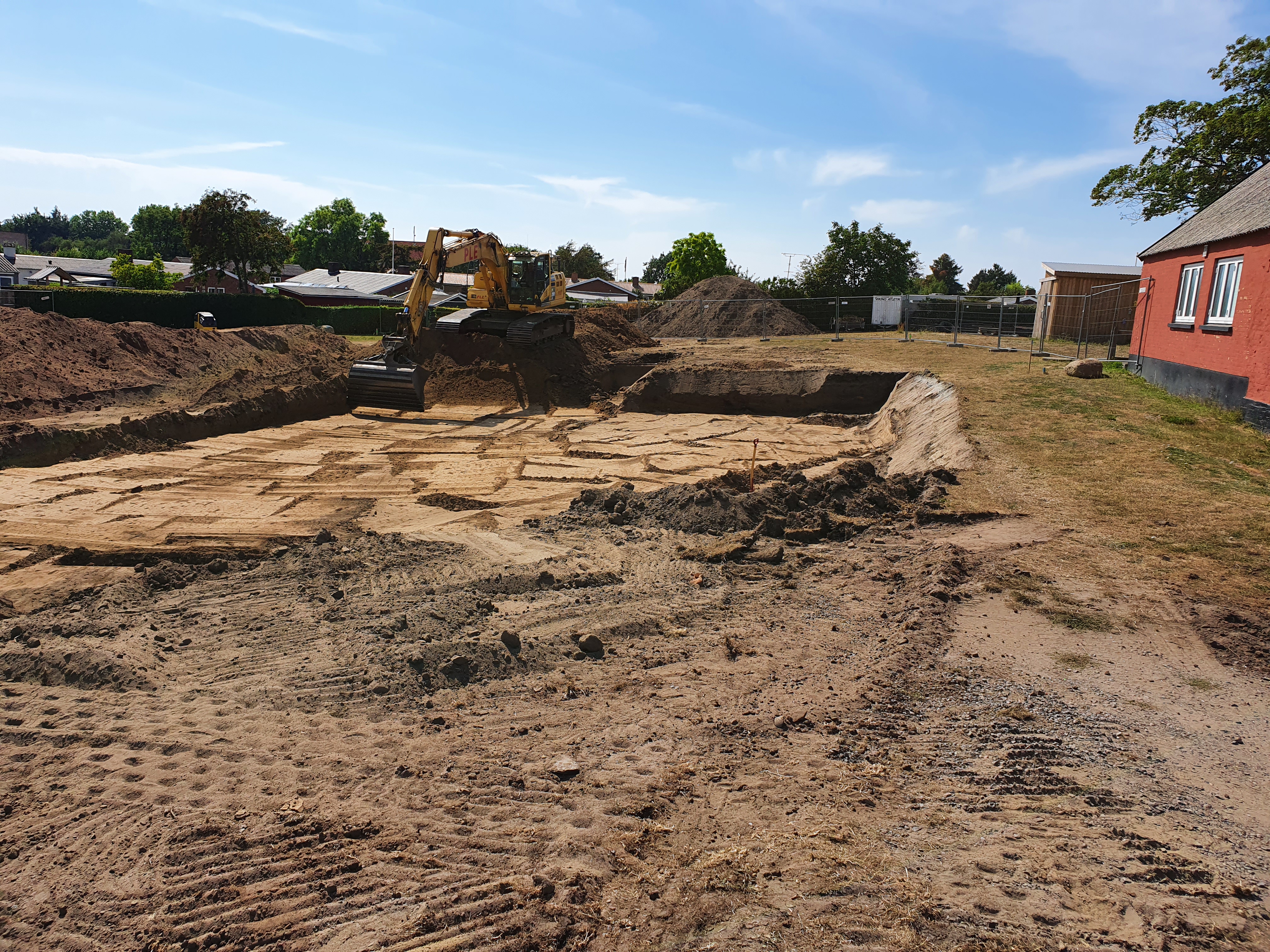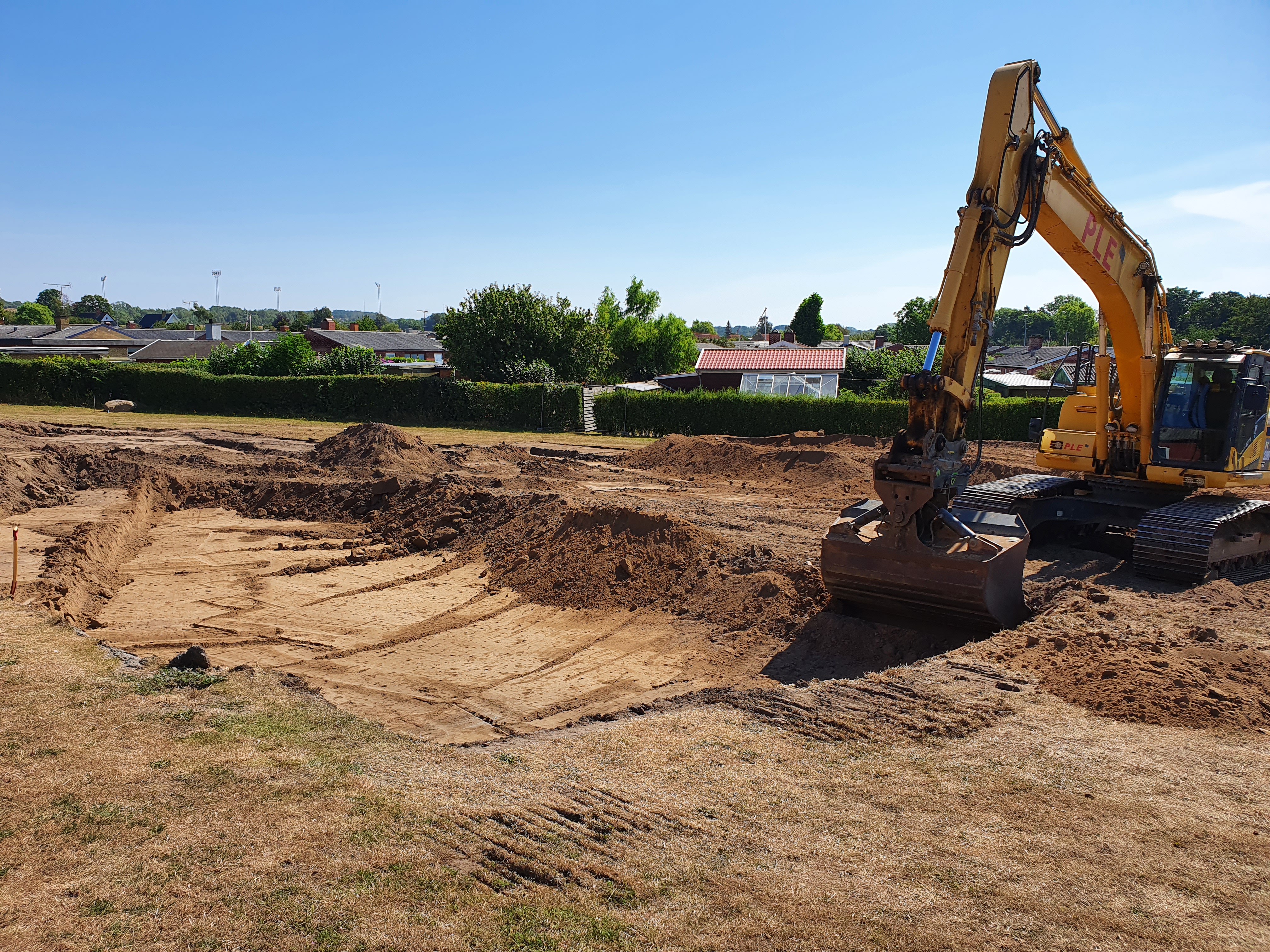 - medio september - Vi får gravetilladelse med henblik på udgravning til arkæologiske udgravninger. Der findes dog ikke noget og museet trækker sig ud.