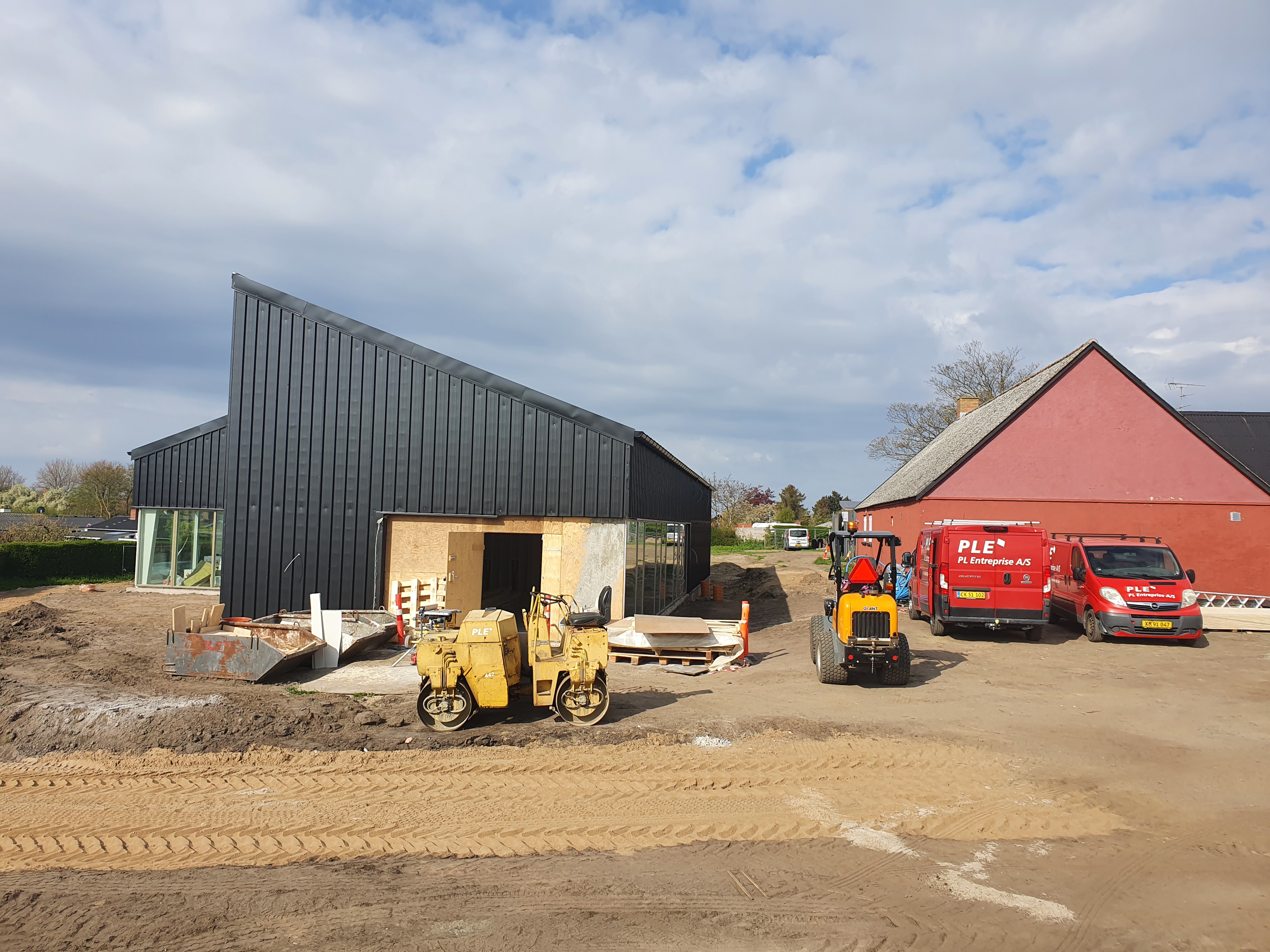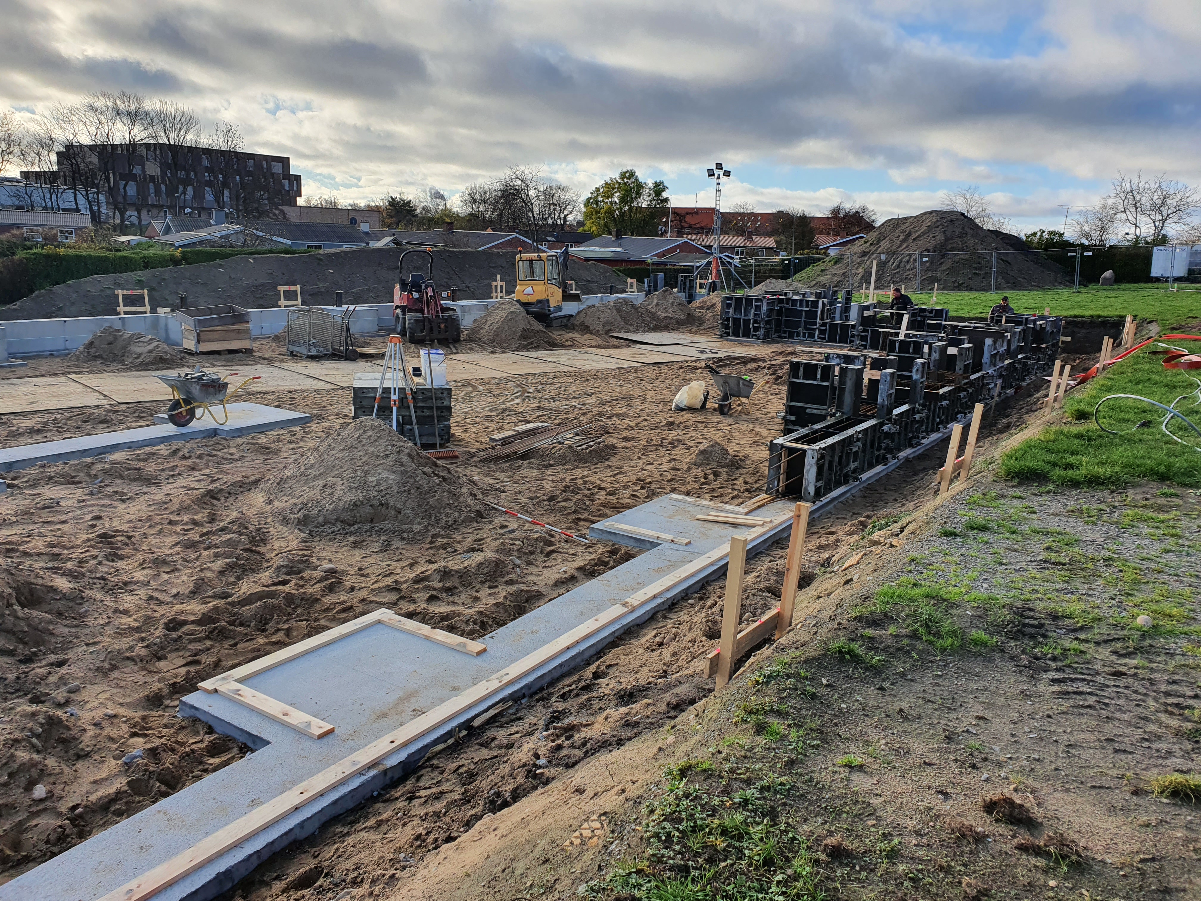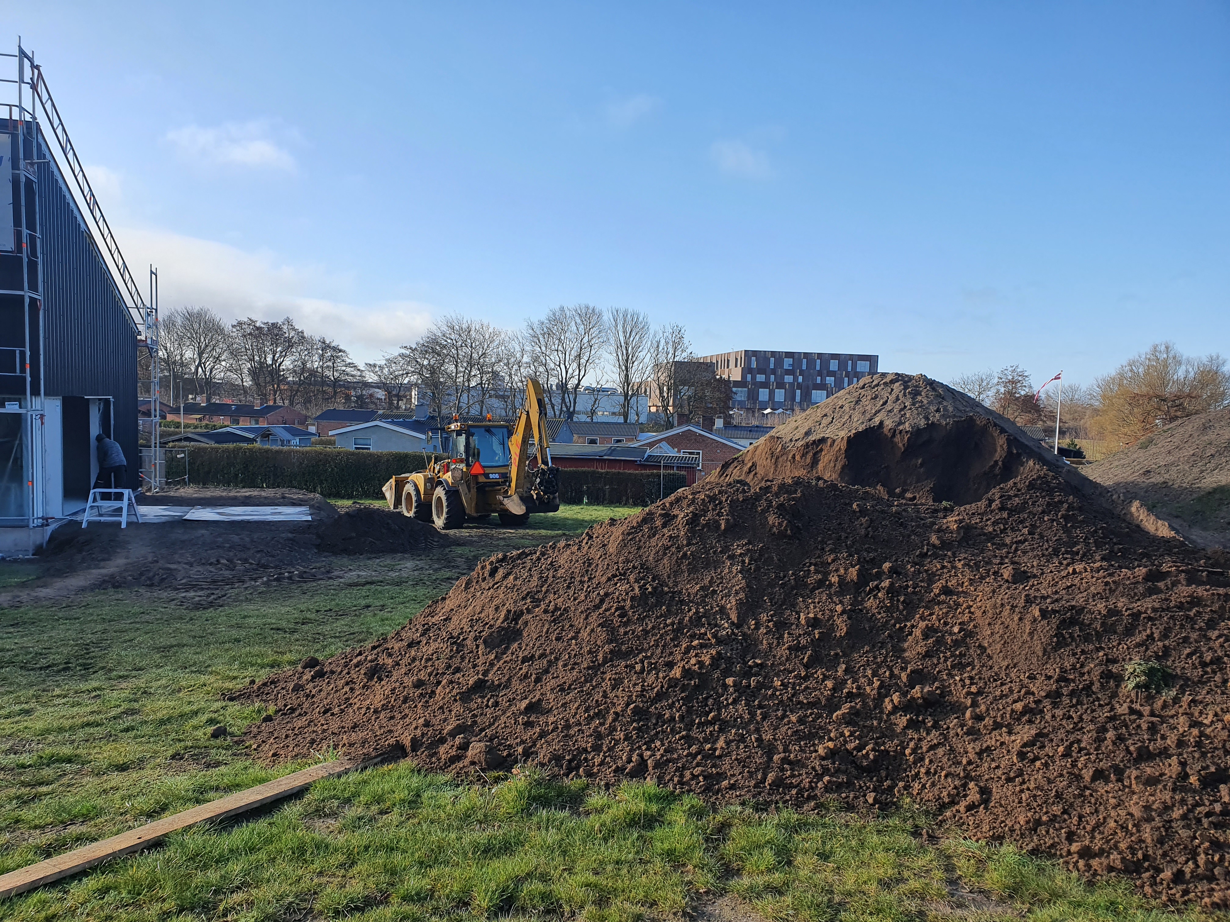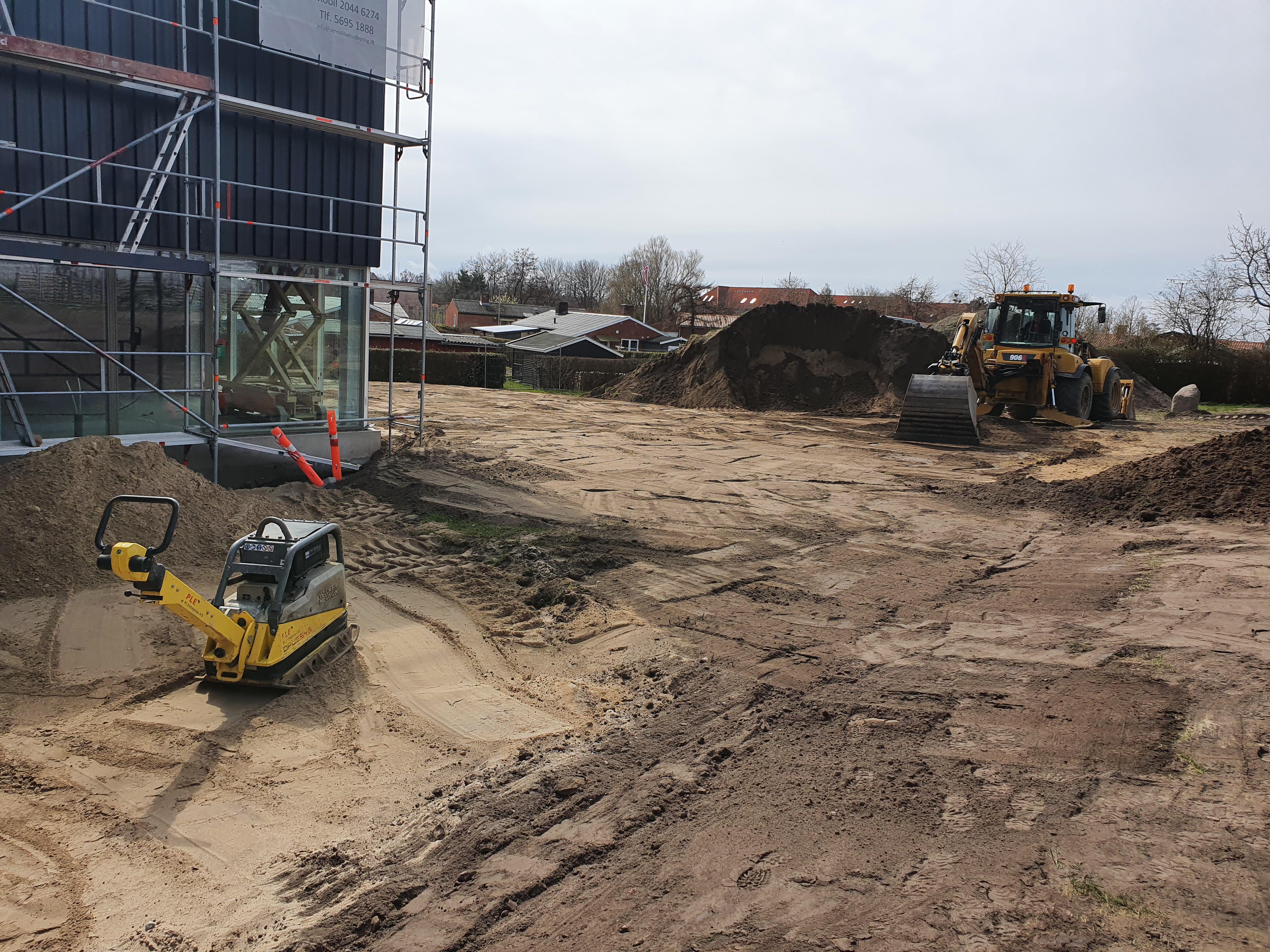 - 8. april - jordbunkerne fordeles på grunden og der laves niveau fri adgang til bygningen.....