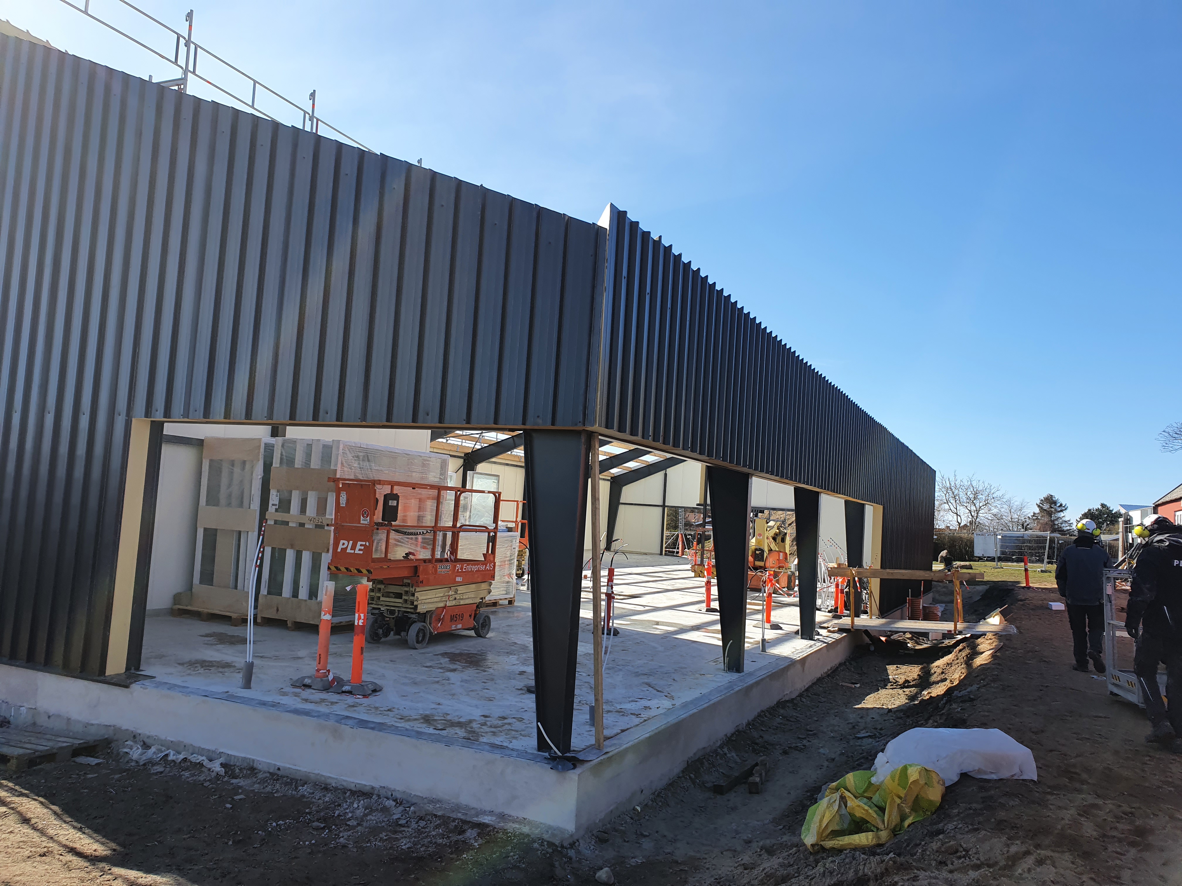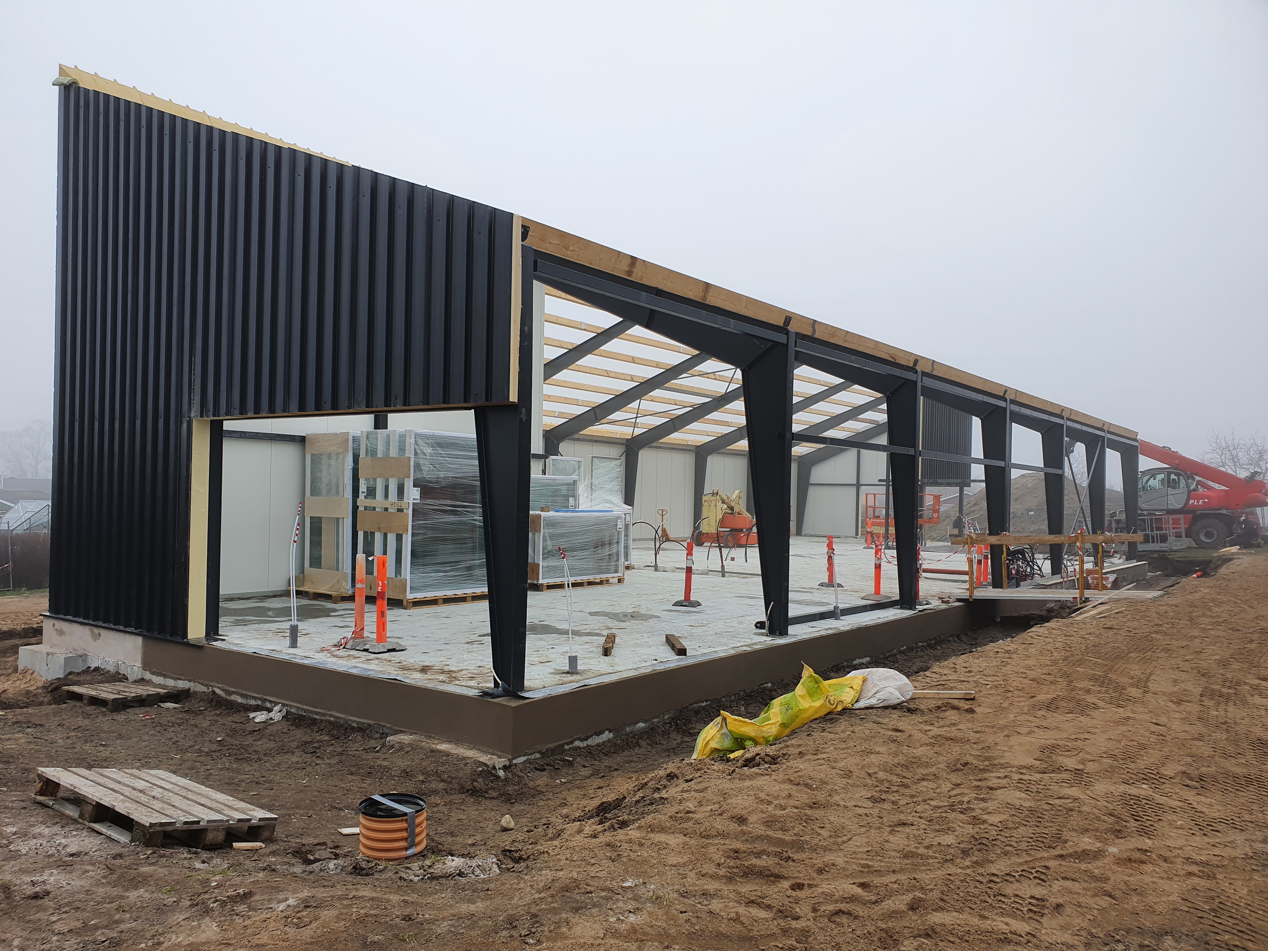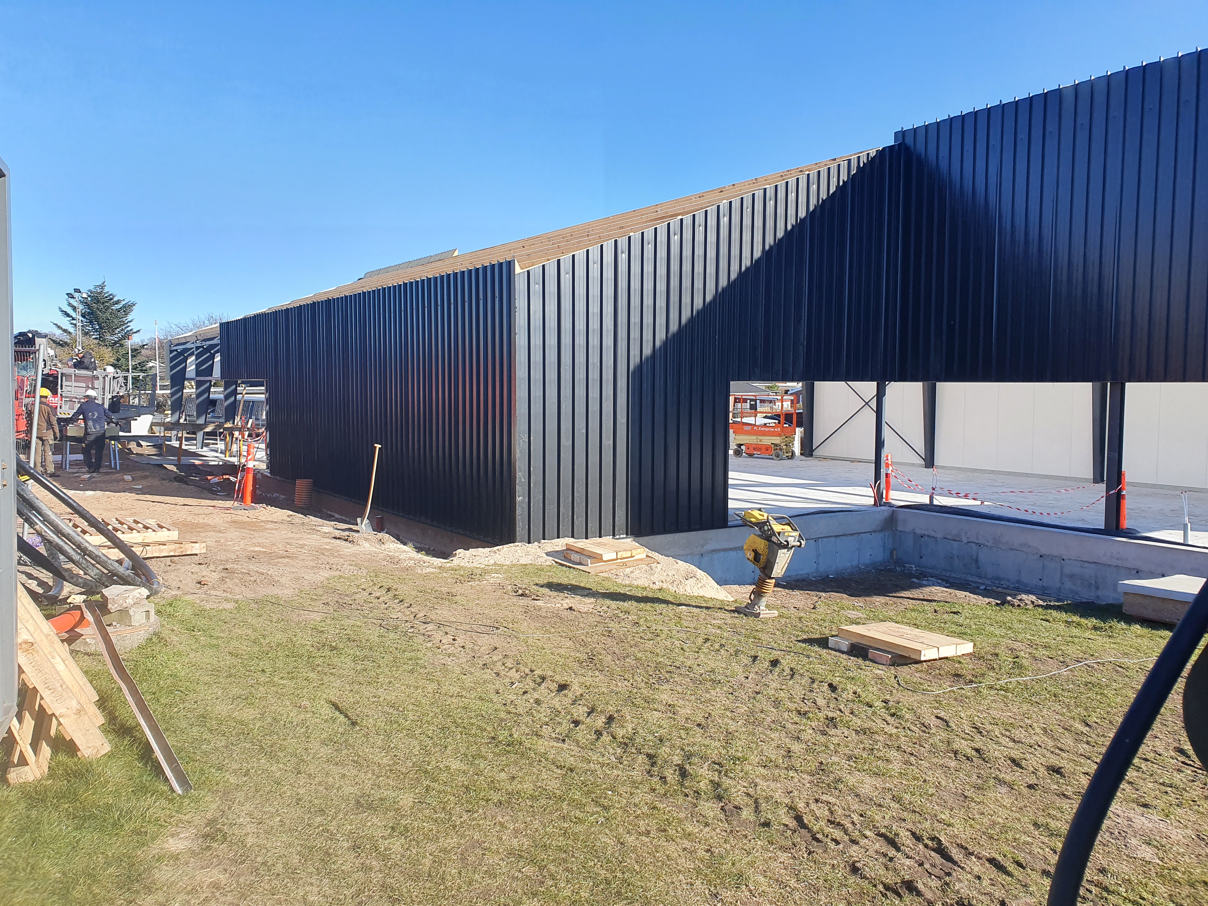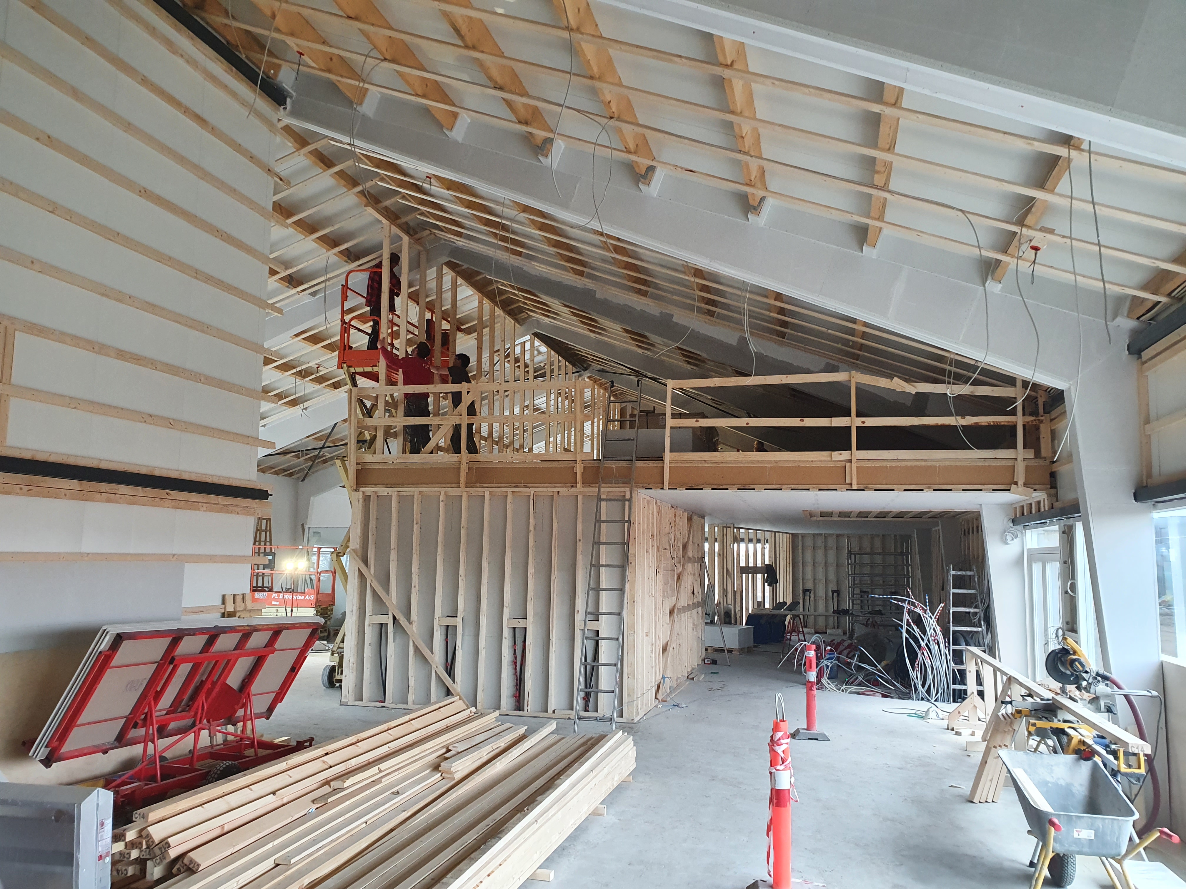 - 4. maj - "Dækket" er færdigt og der påbegyndes opførelse af ventilationsanlæg. Indervægge til omklædningsrum beklædes.