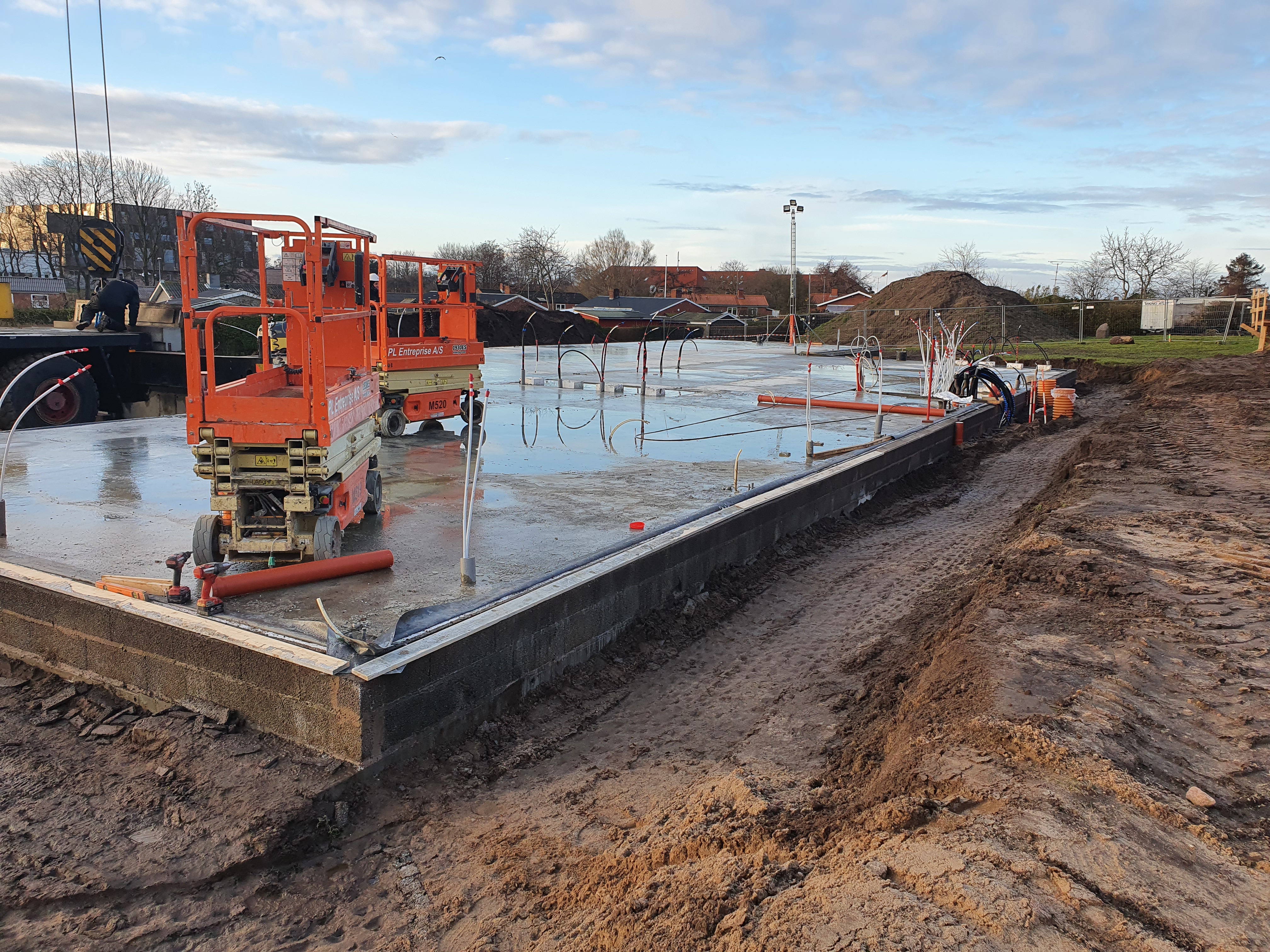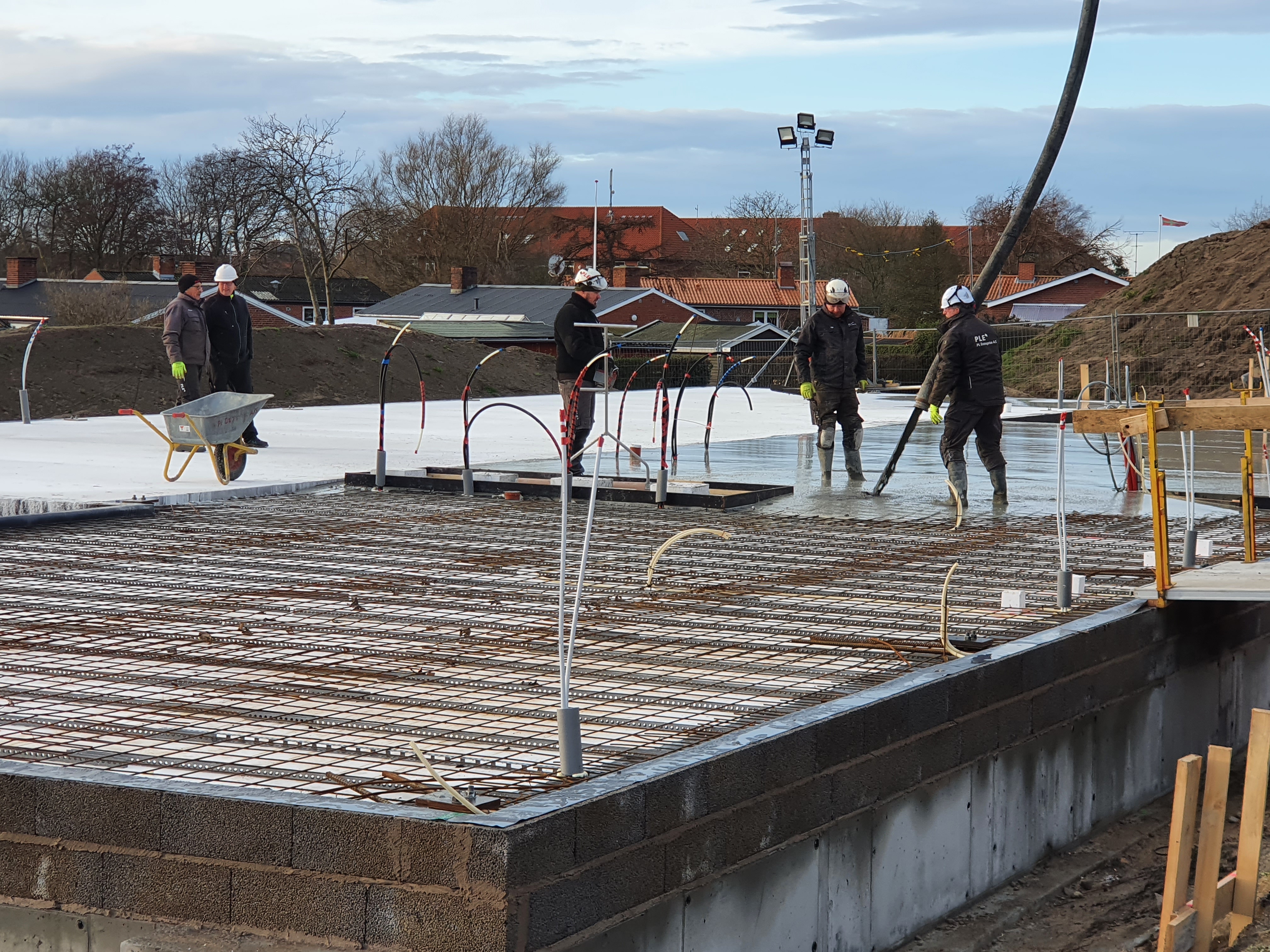 - 19. januar - nu støbes gulvfladen på fundamentet.