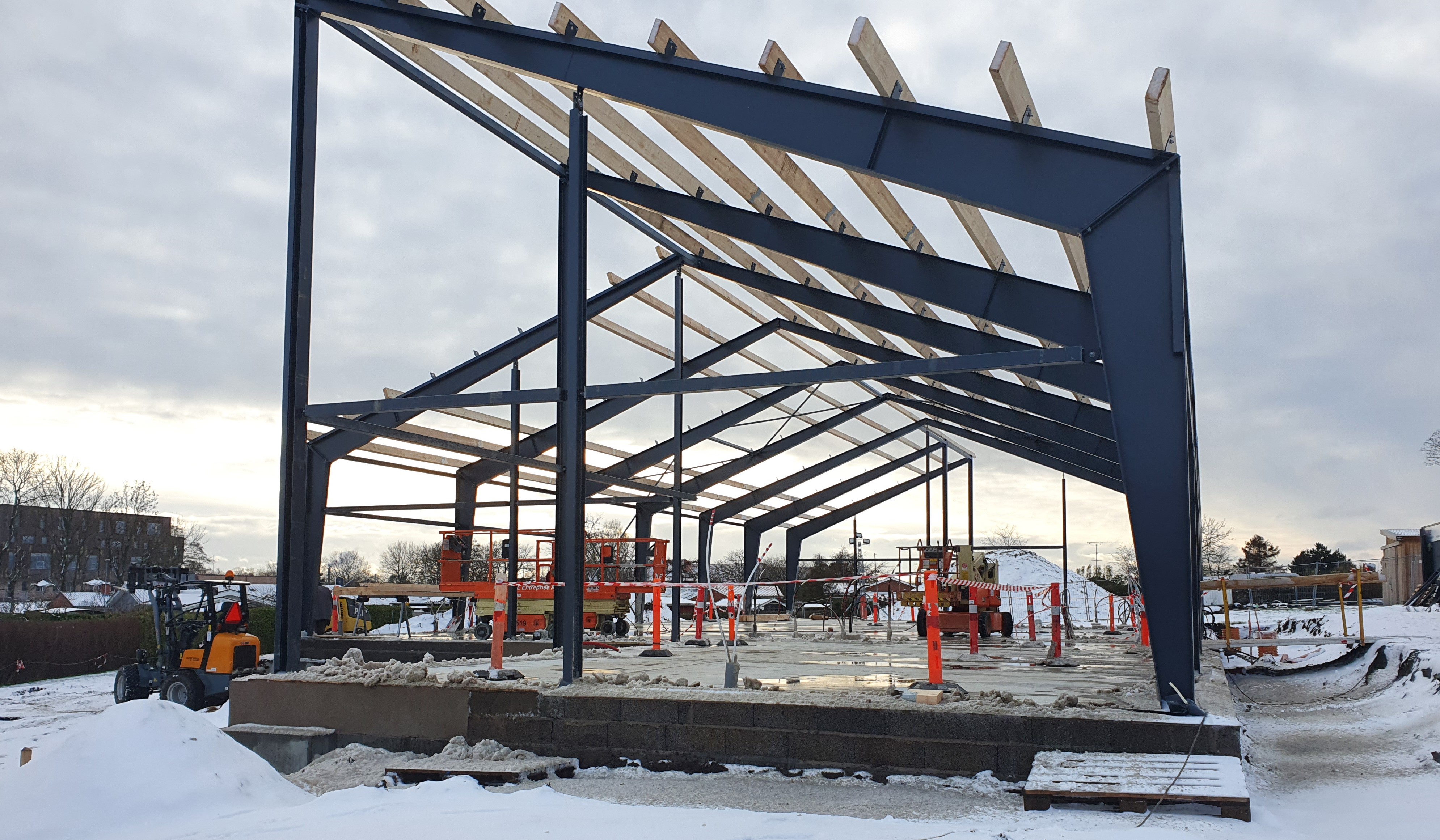 - 28. januar - Stålspærene er sat op, klar til næste skridt.
