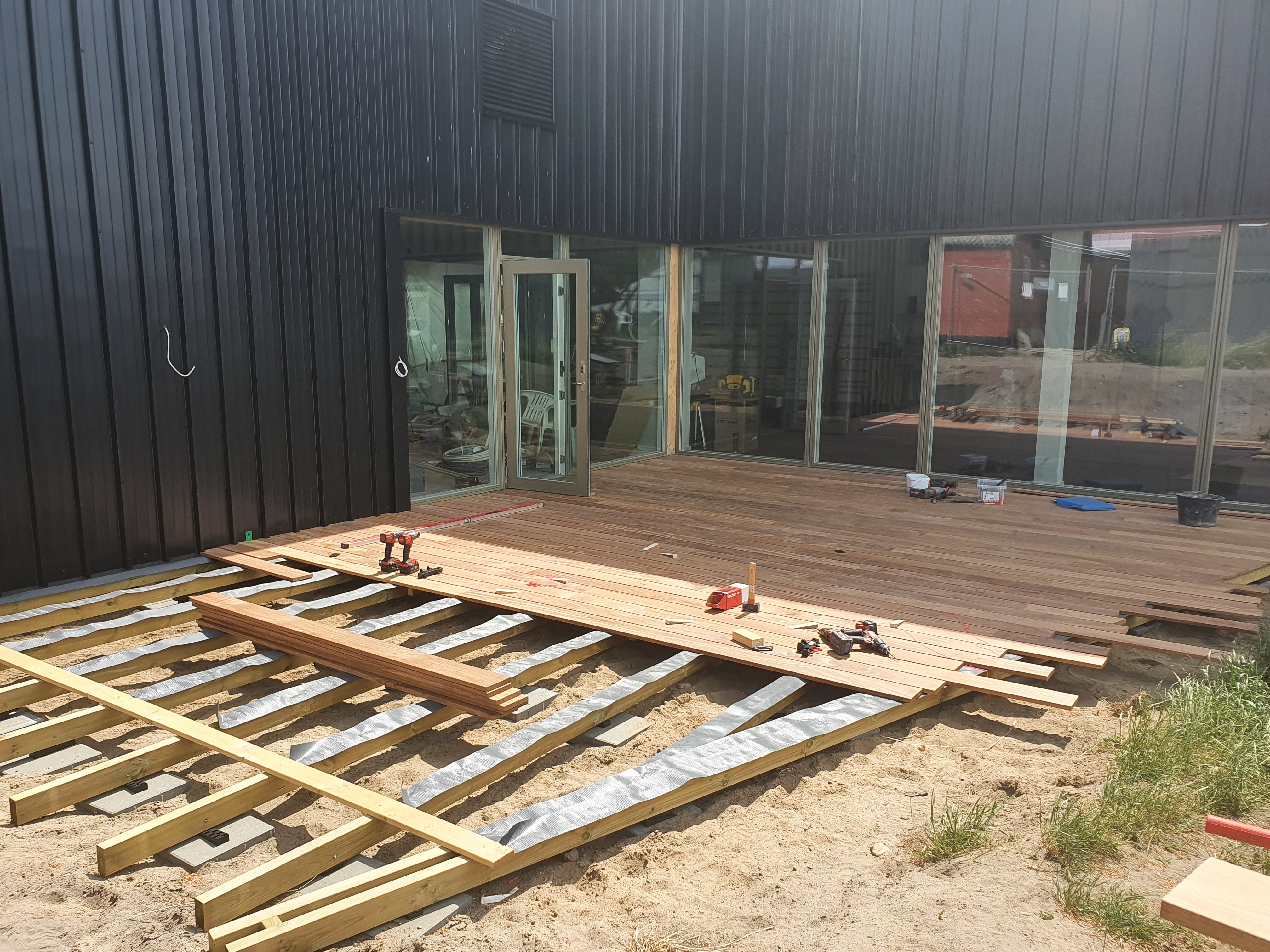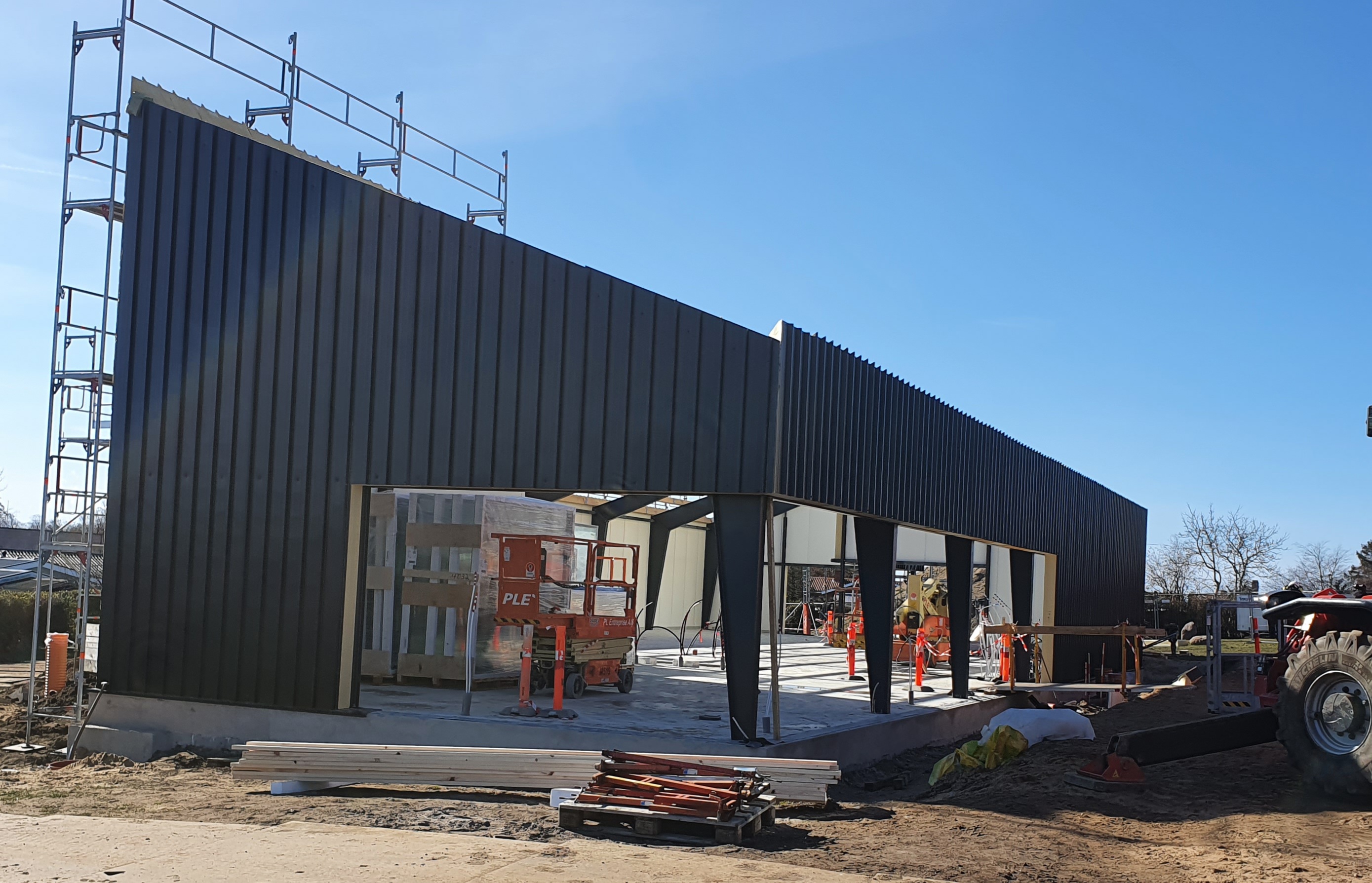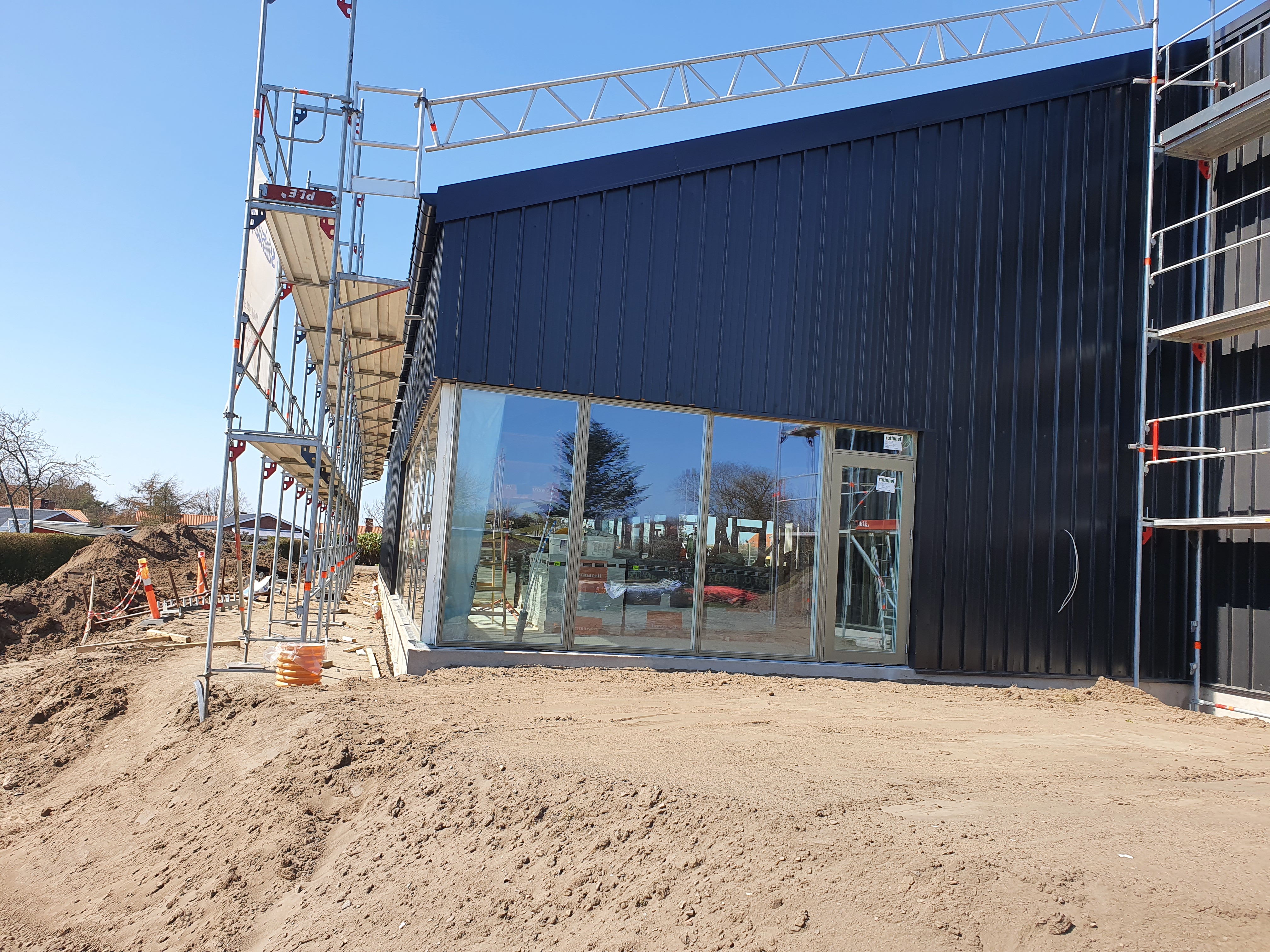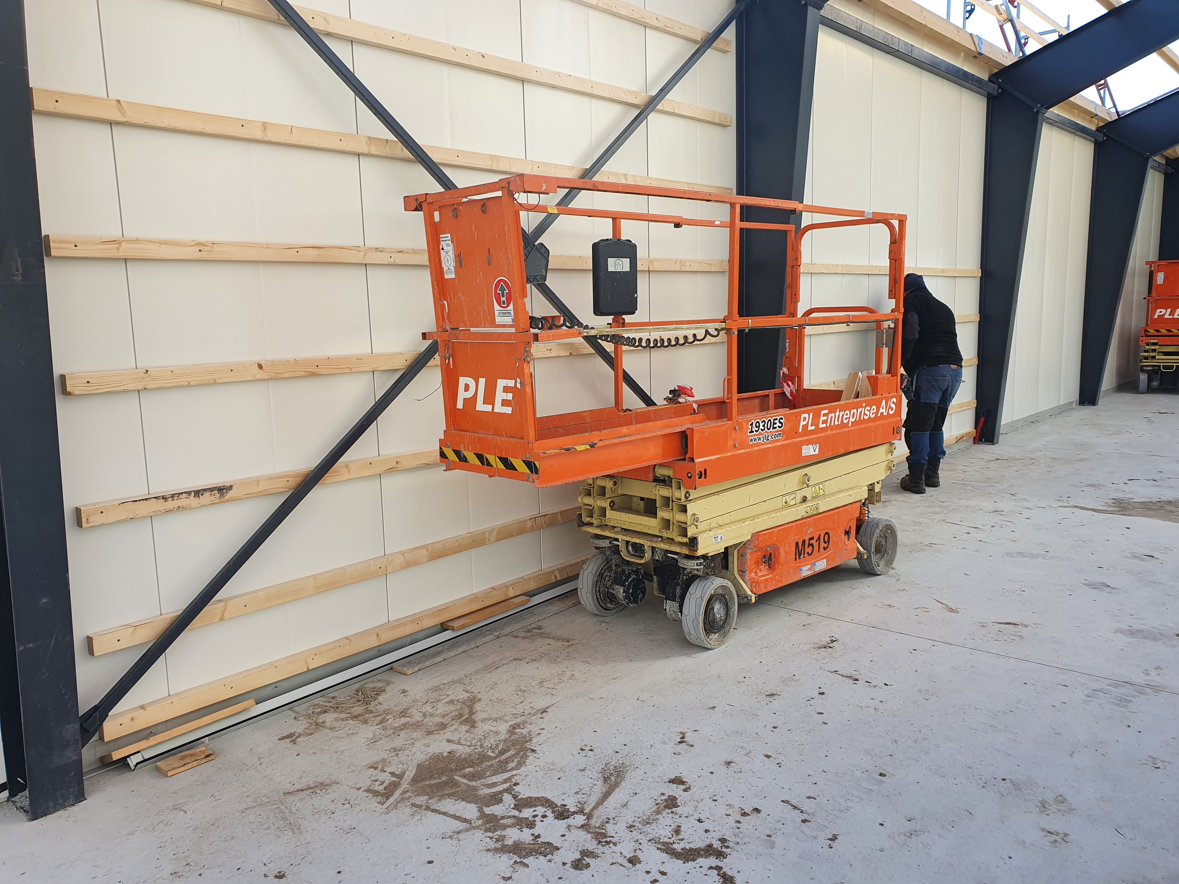 - 8. marts - Ydervægge er monteret, der sættes stillads op, så taget kan blive lagt. Stillads er sikkerhed for folket på taget.