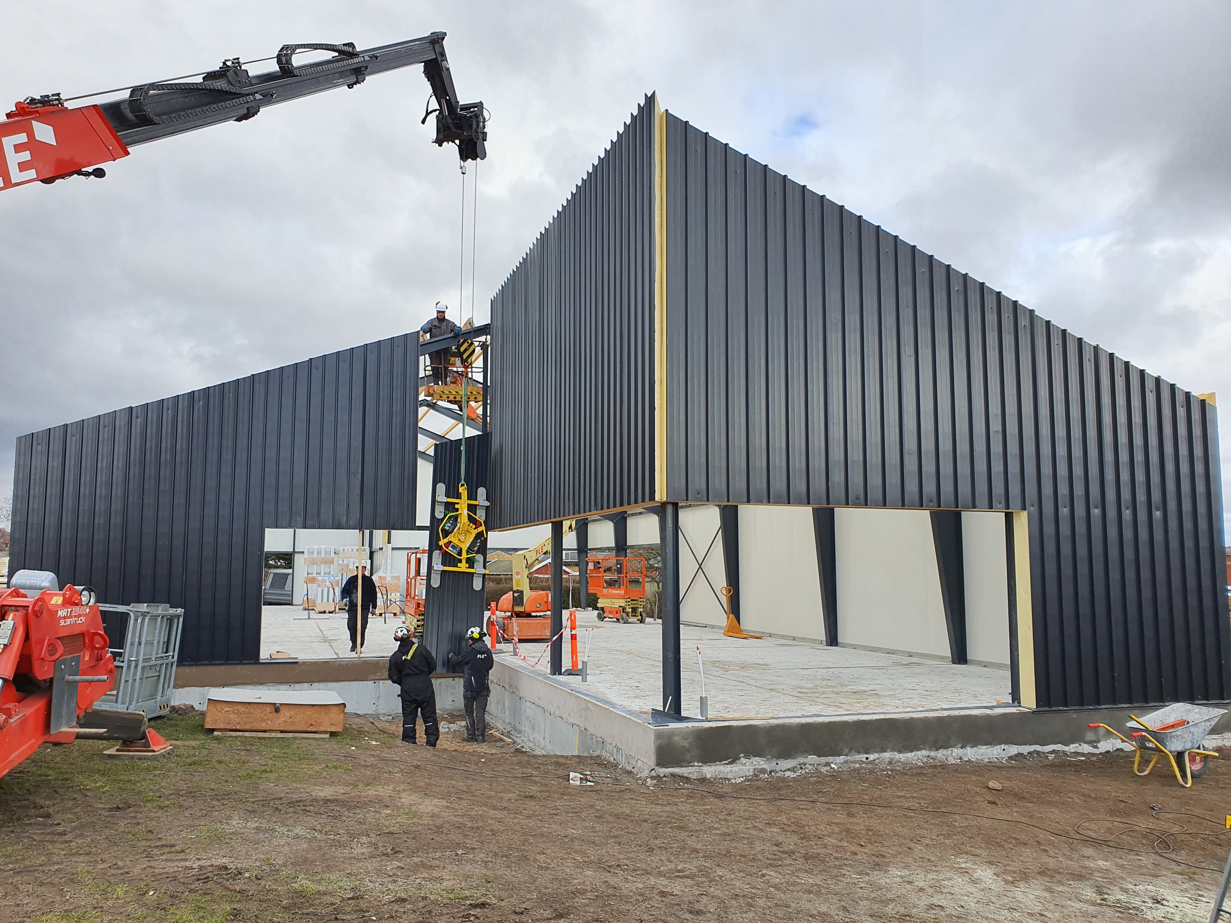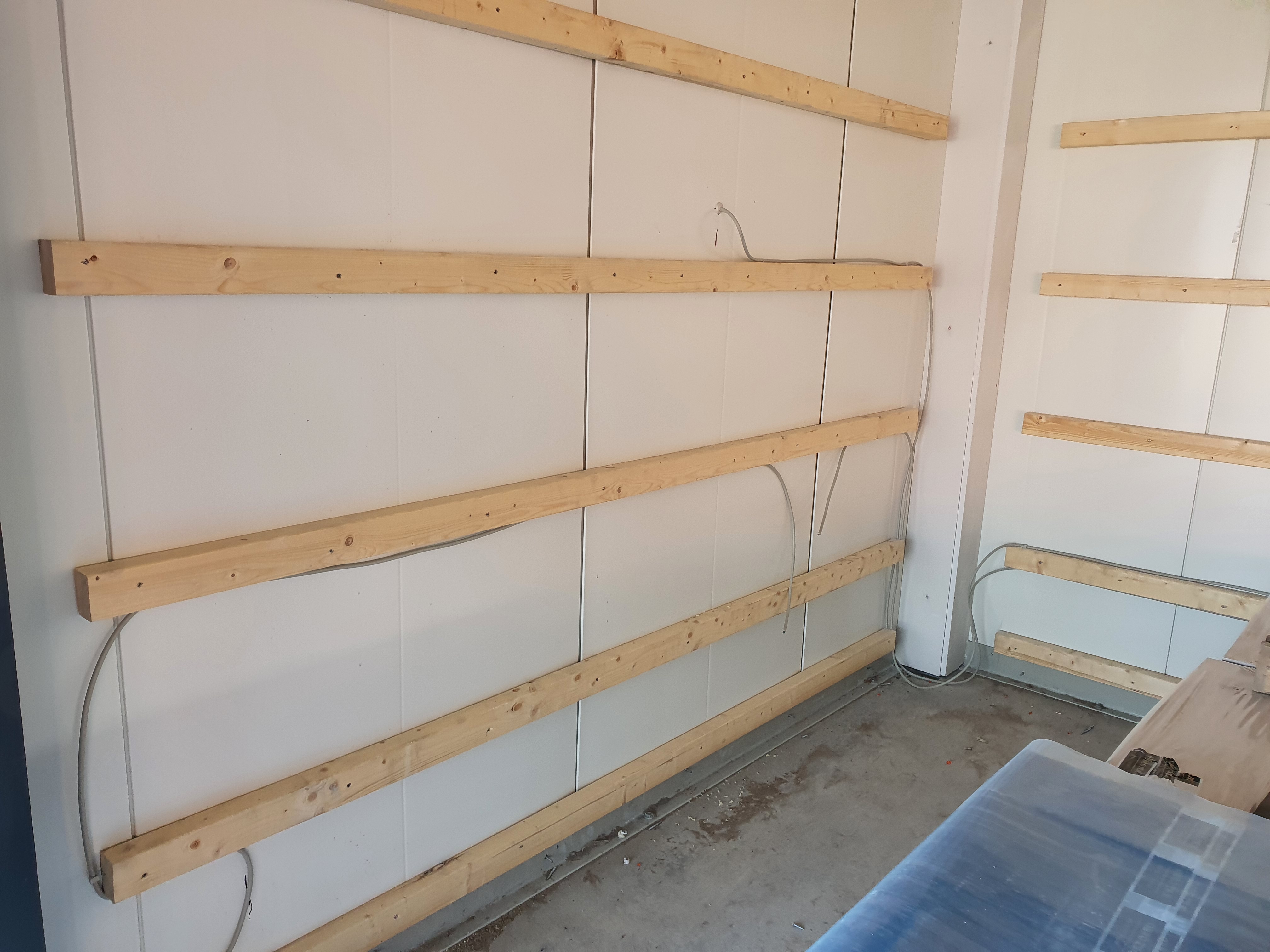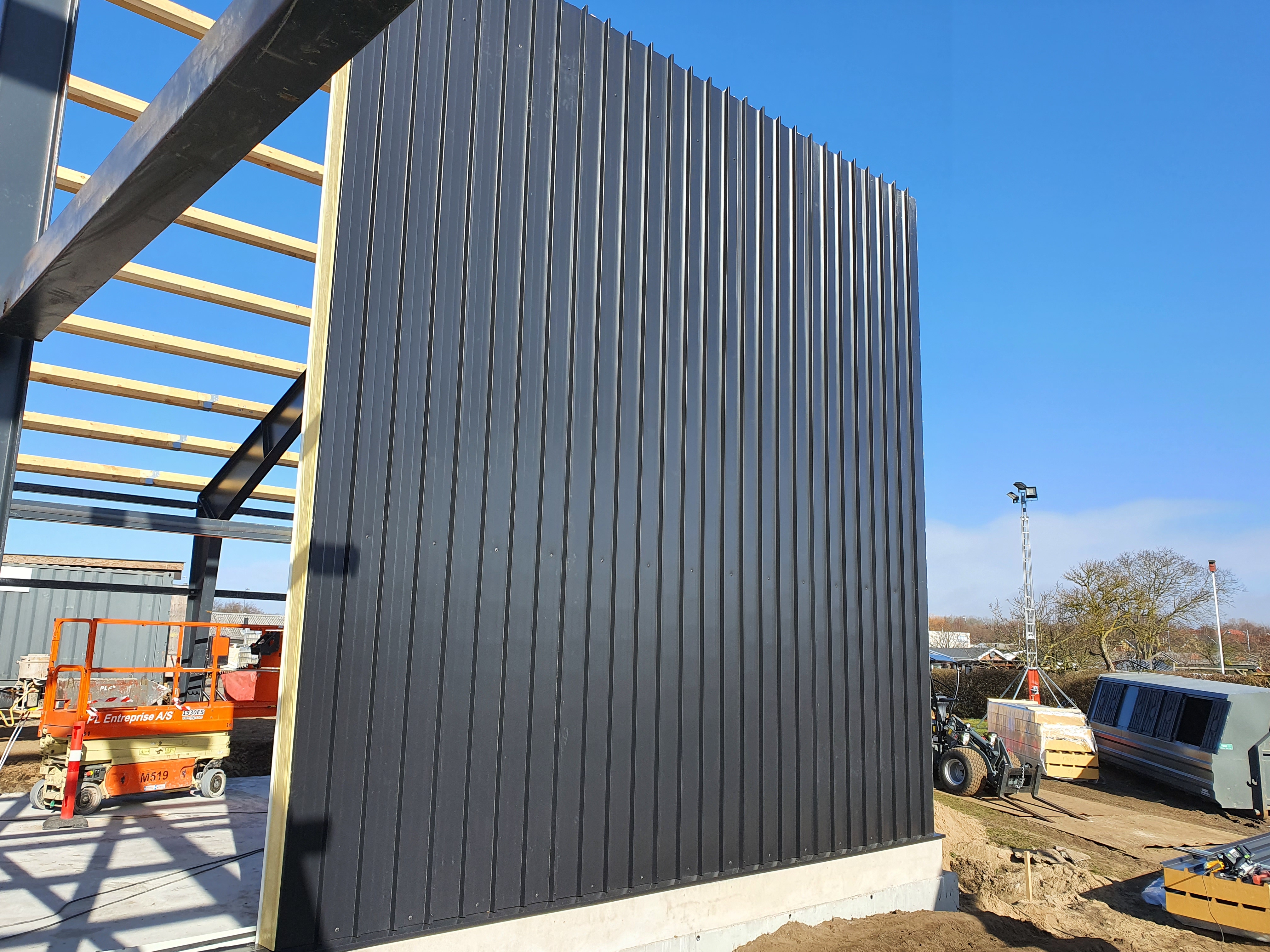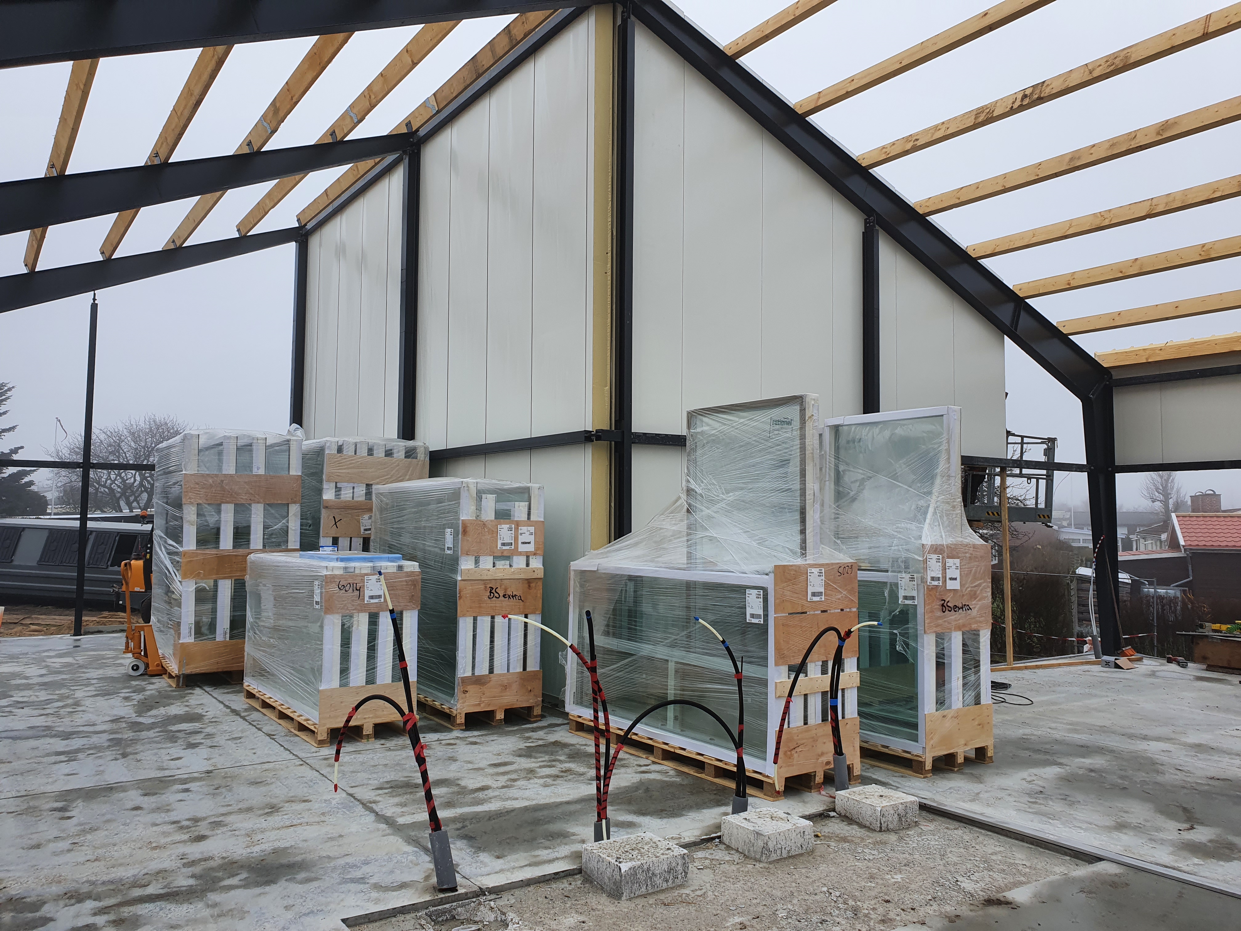 - 23. februar - Ydervægge monteres. Yderbeklædning og isolering i et stykke. 4 m2 pr. kassette