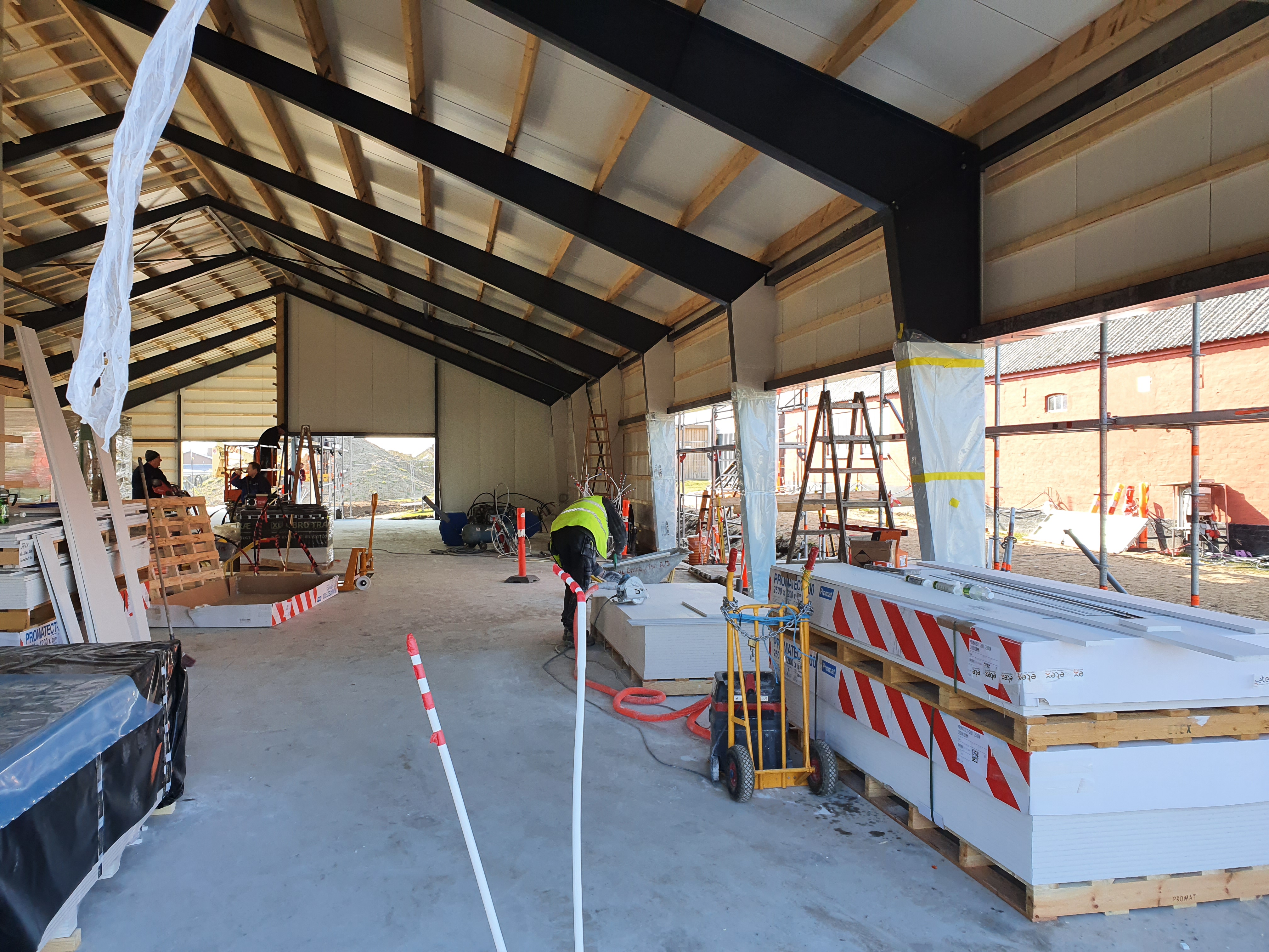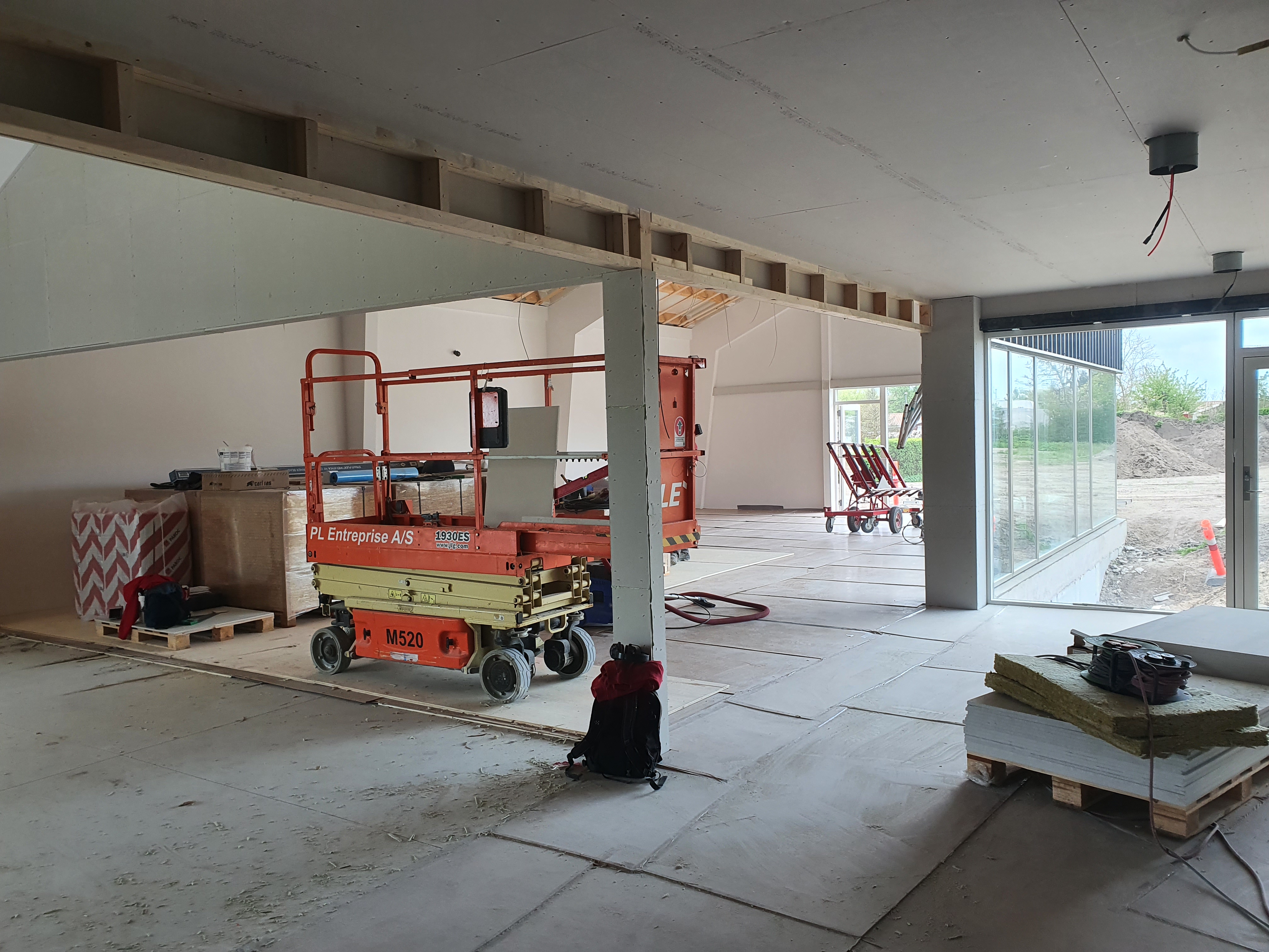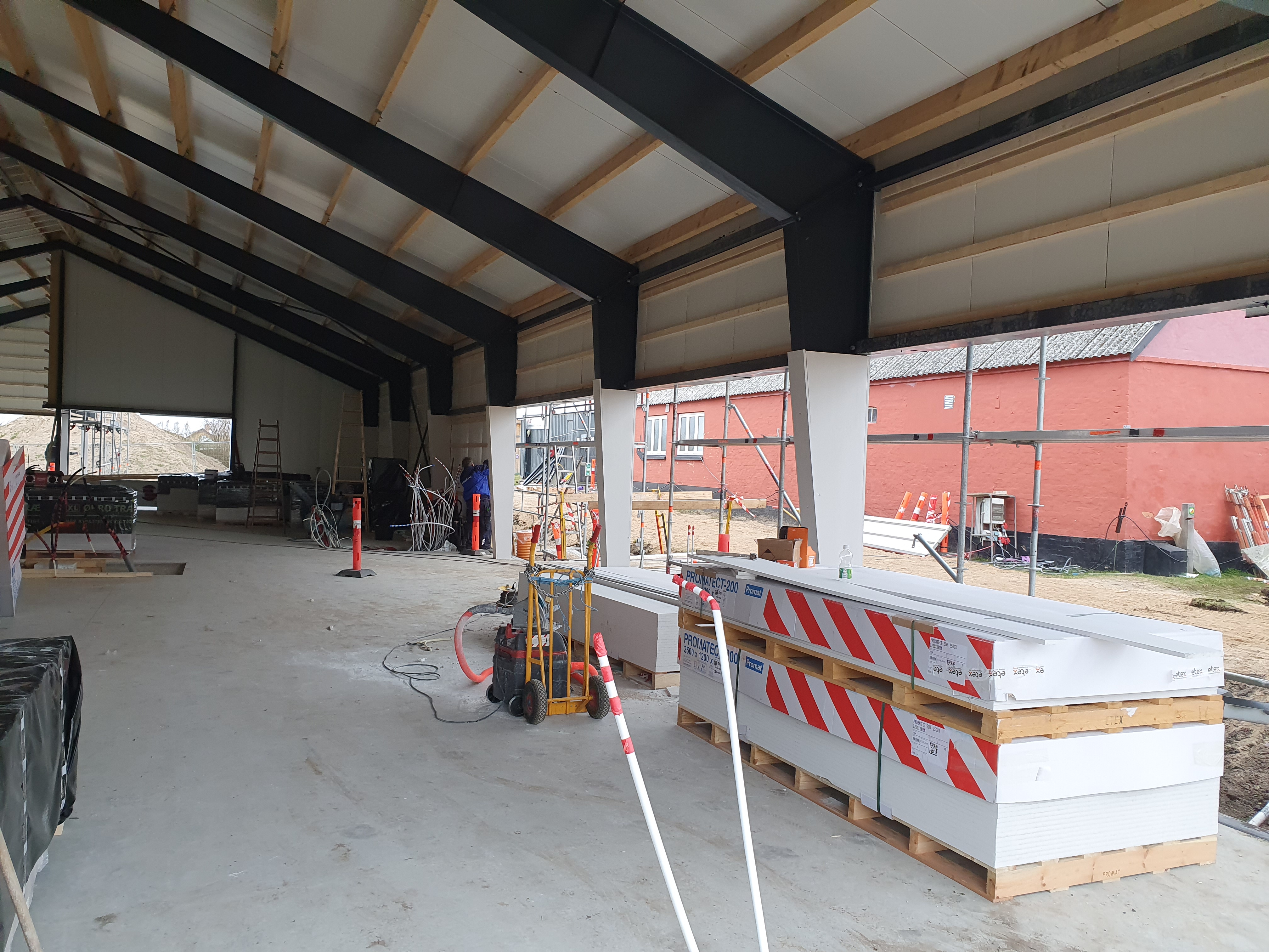 - 20. marts - der sættes forskalling op, brandgips og inddækning af taget. Dette vil tage et par uger.