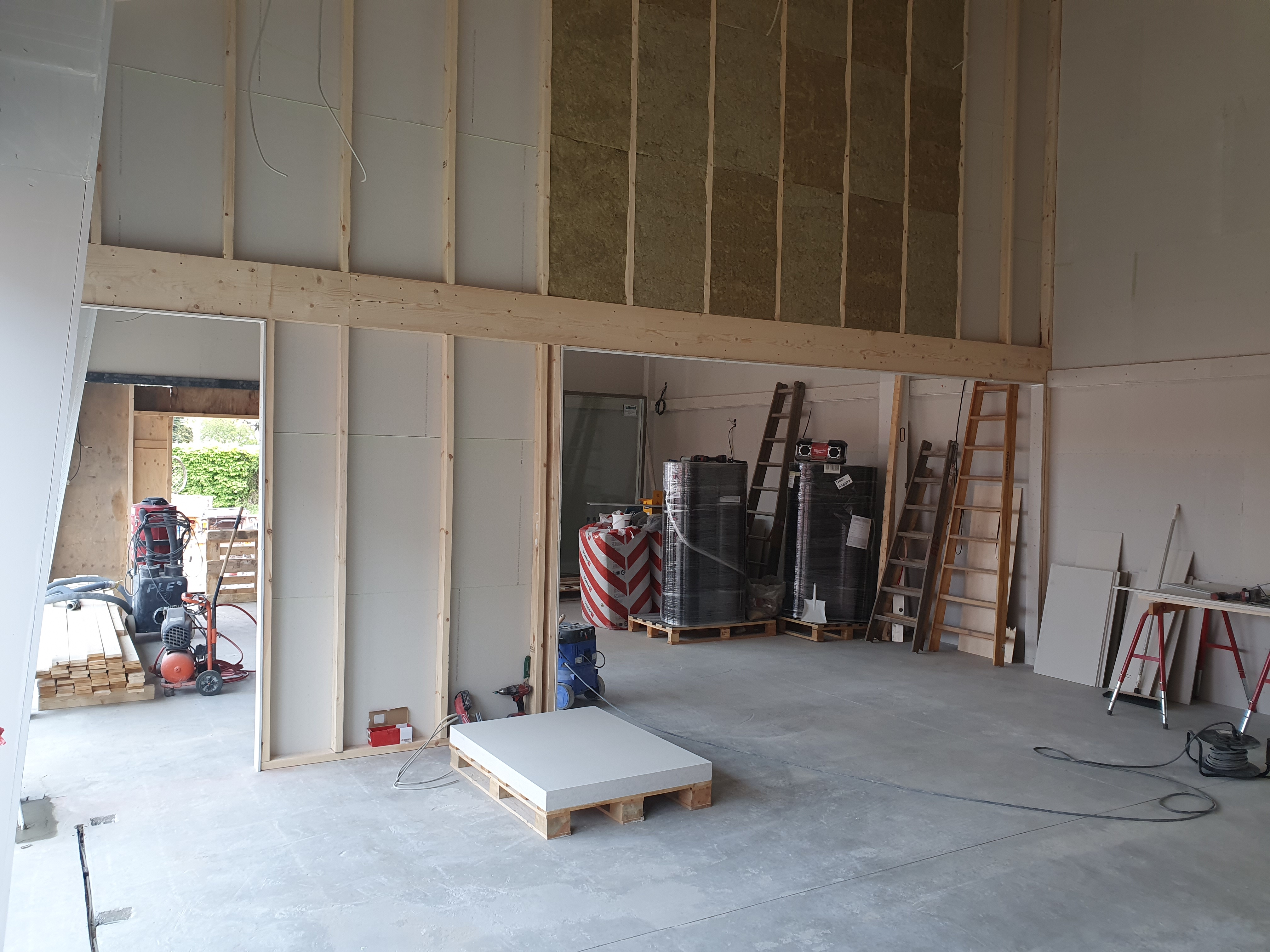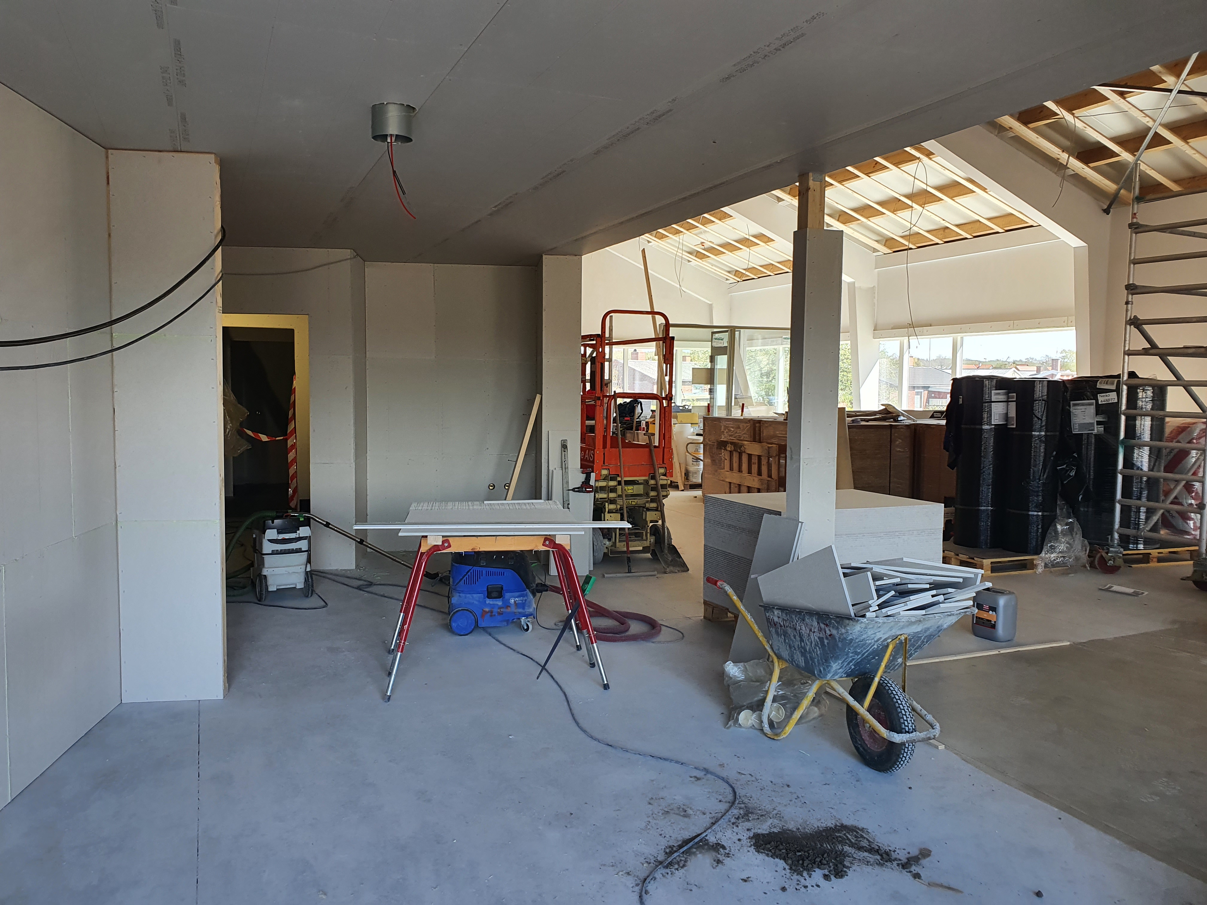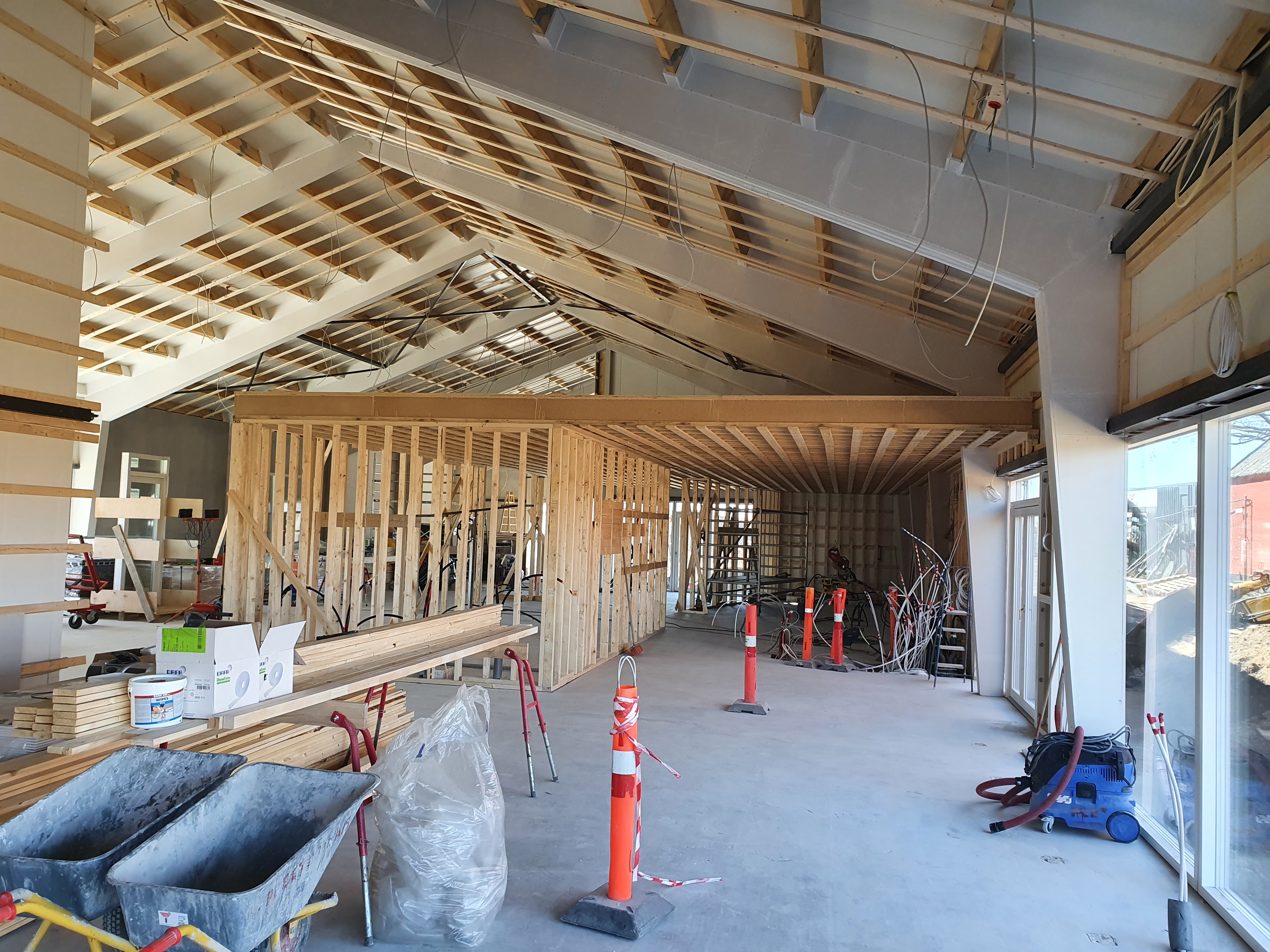 - 20. marts - der sættes forskalling op, brandgips og inddækning af taget. Dette vil tage et par uger.