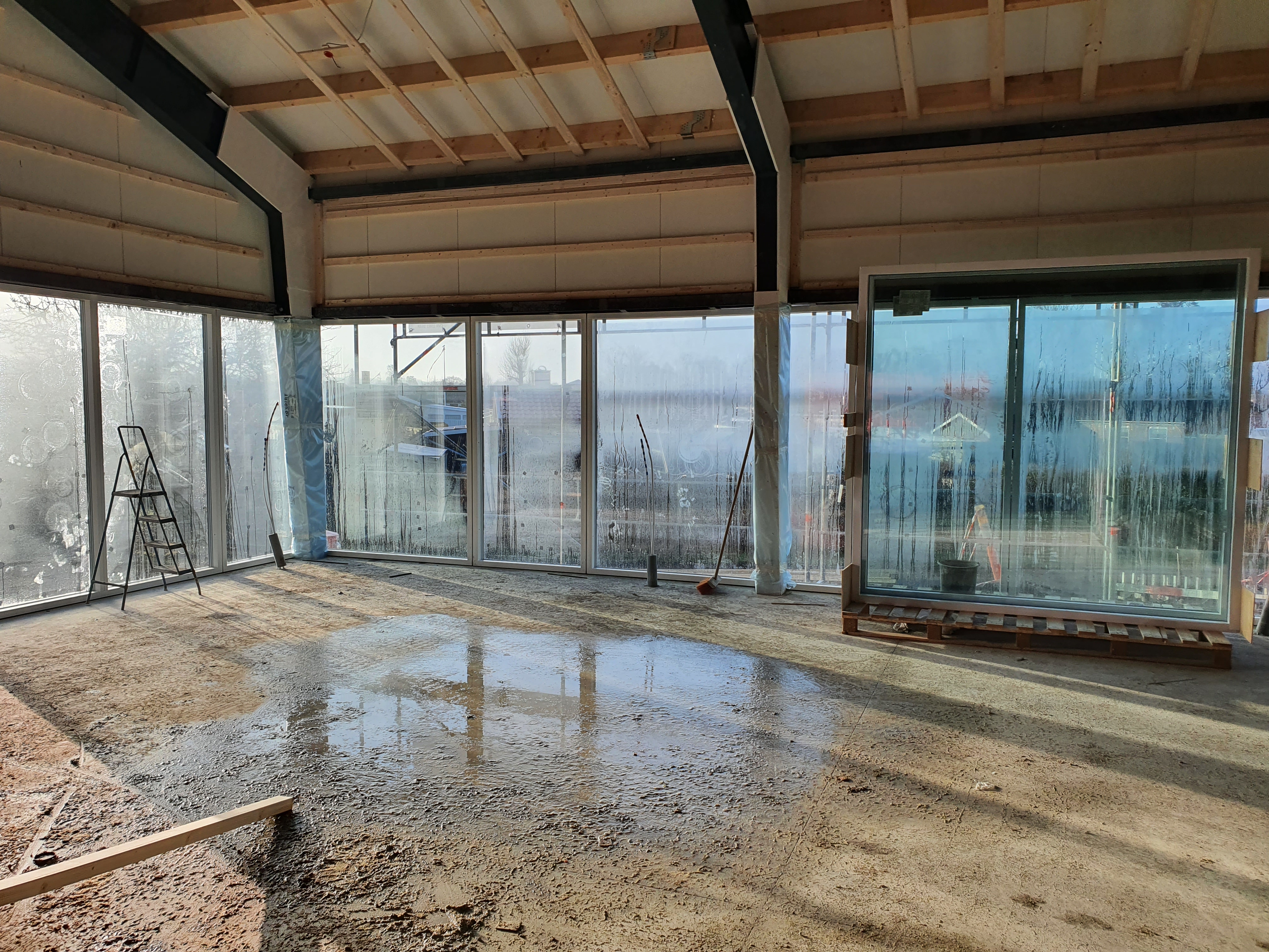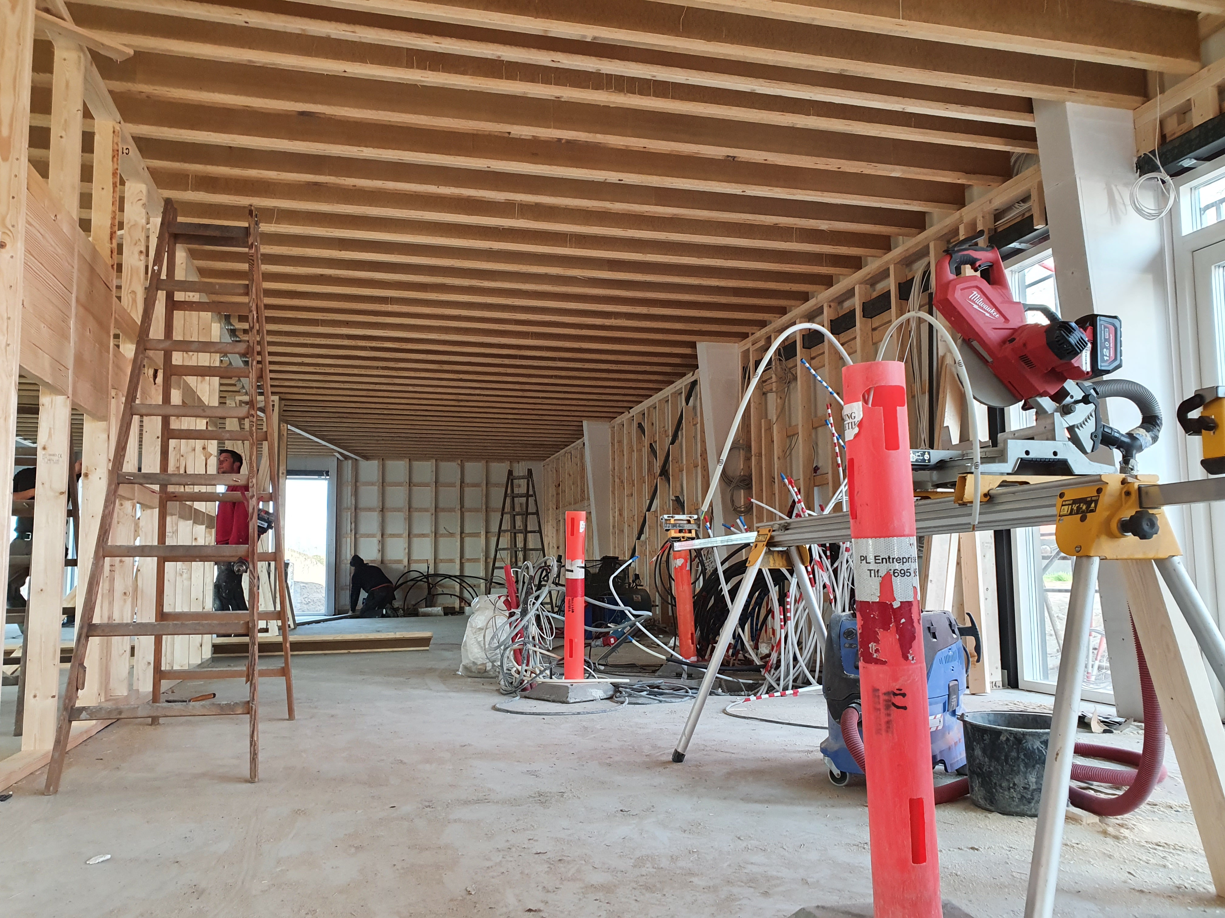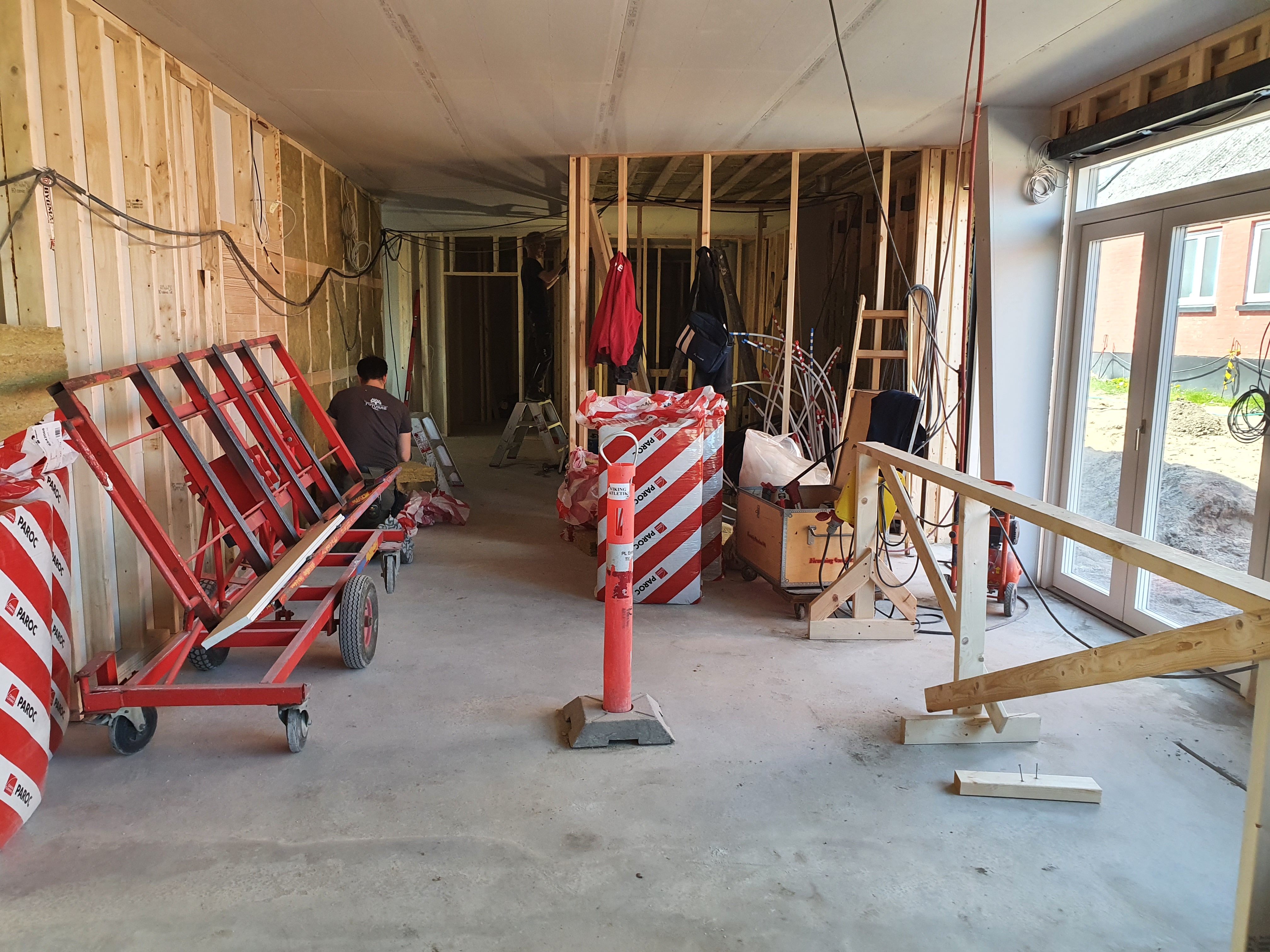 - 7. juni - færdiggørelsen fortsætter indvendigt og der sættes bl.a. inderdøre i bygningen og lamper monteres.