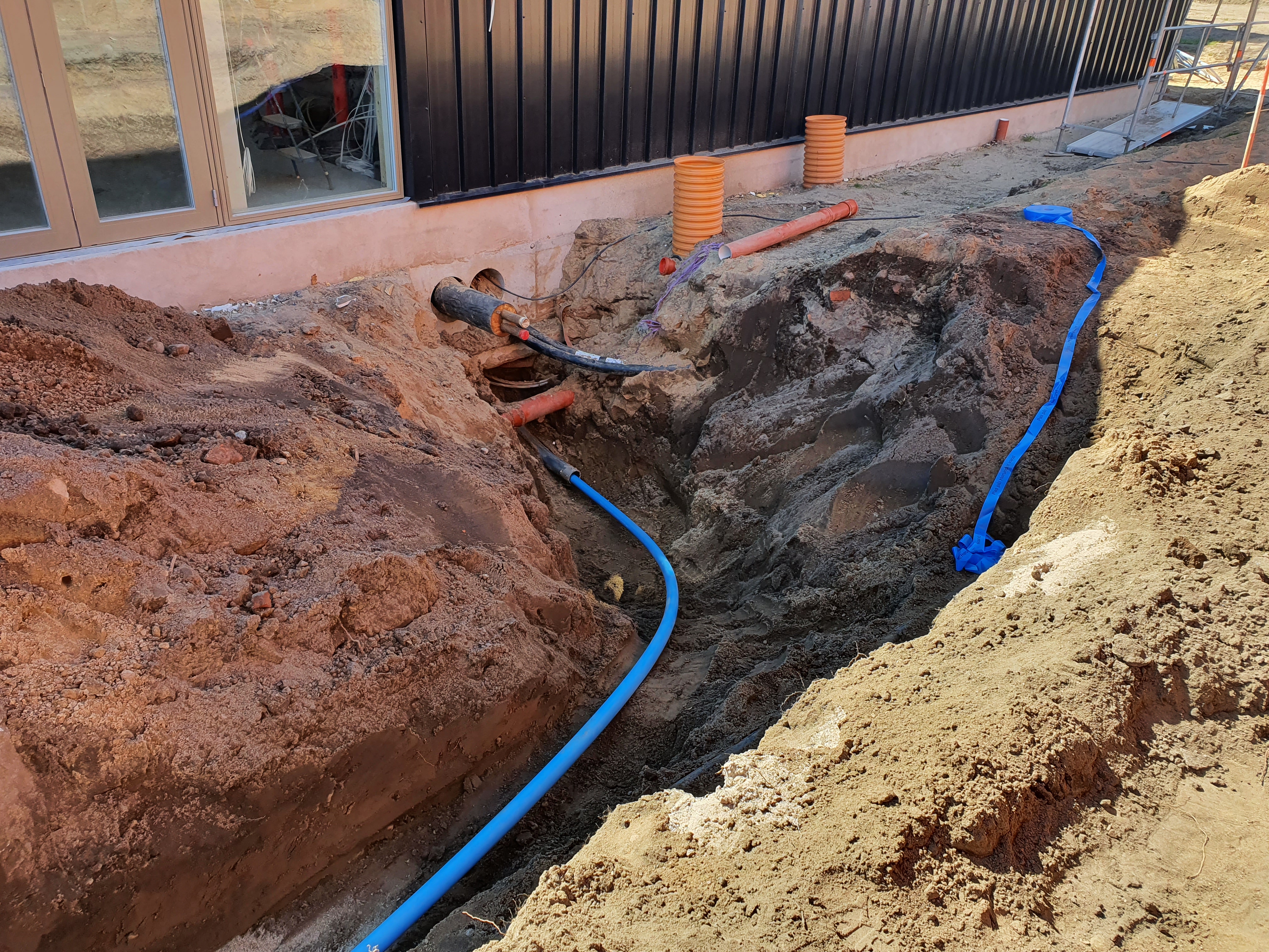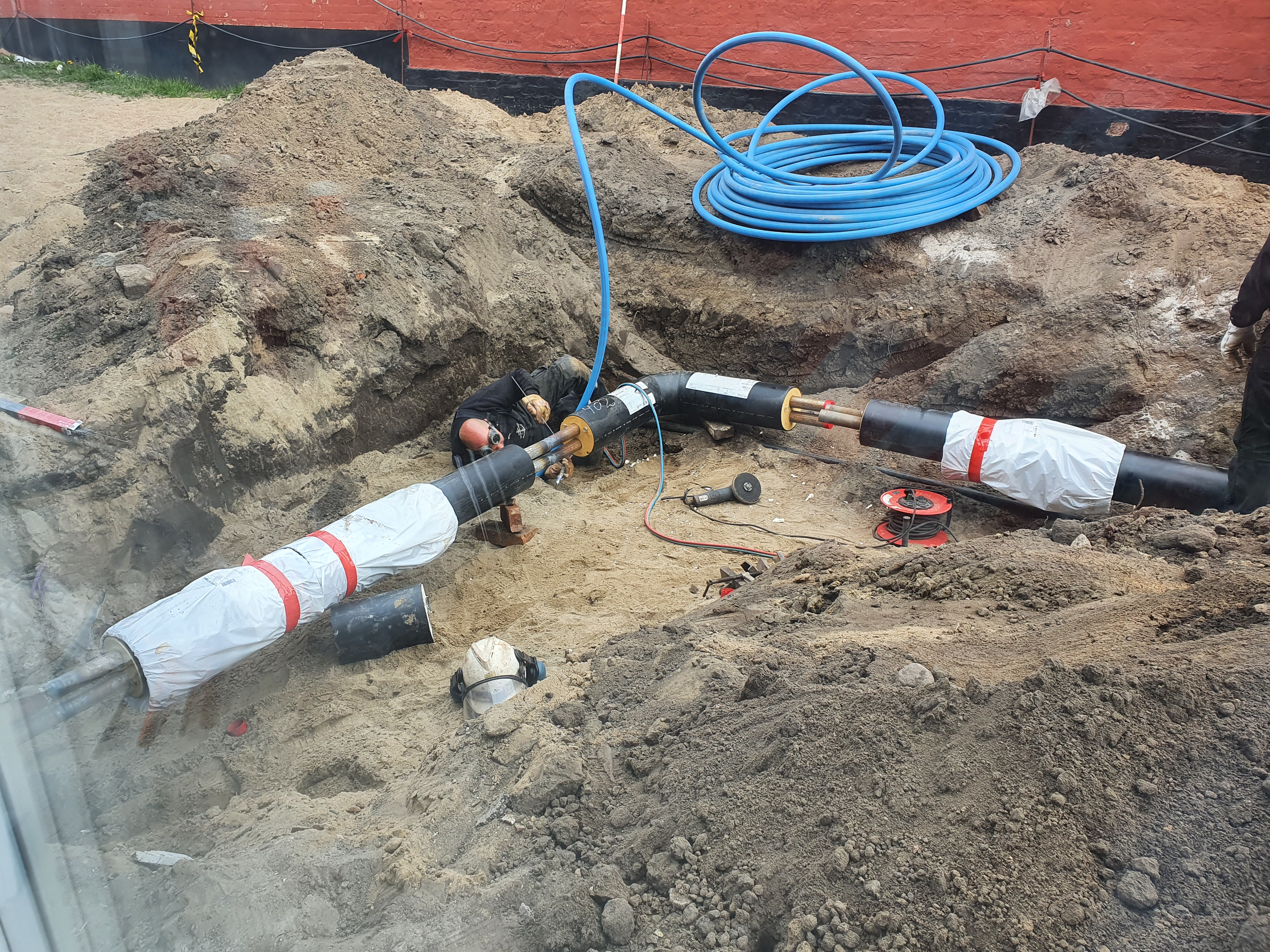 - 16. april - der graves op til nye forsynings/afledningsledninger til huset. Nye fjernvarmerør, vand, el og ny kloak.