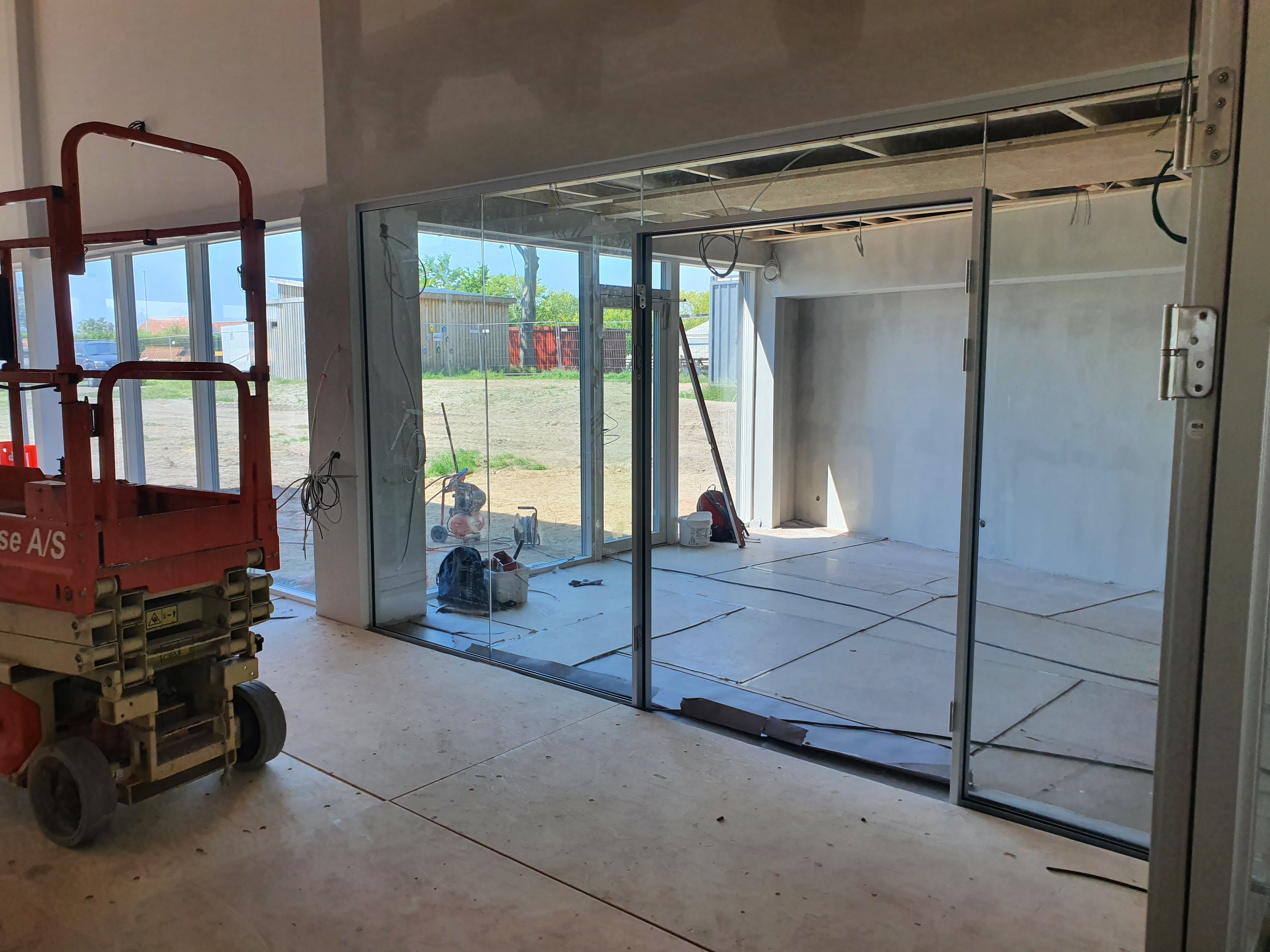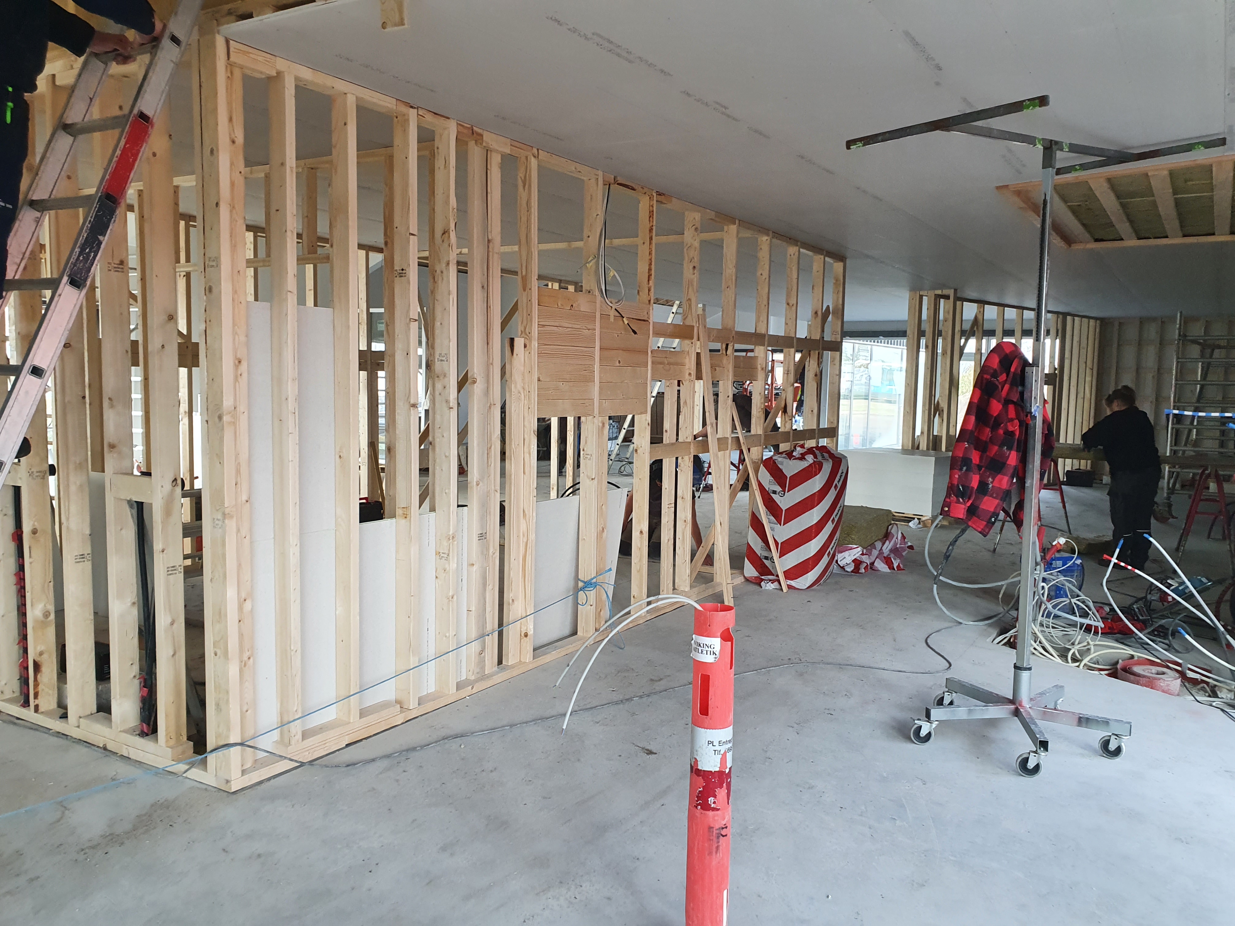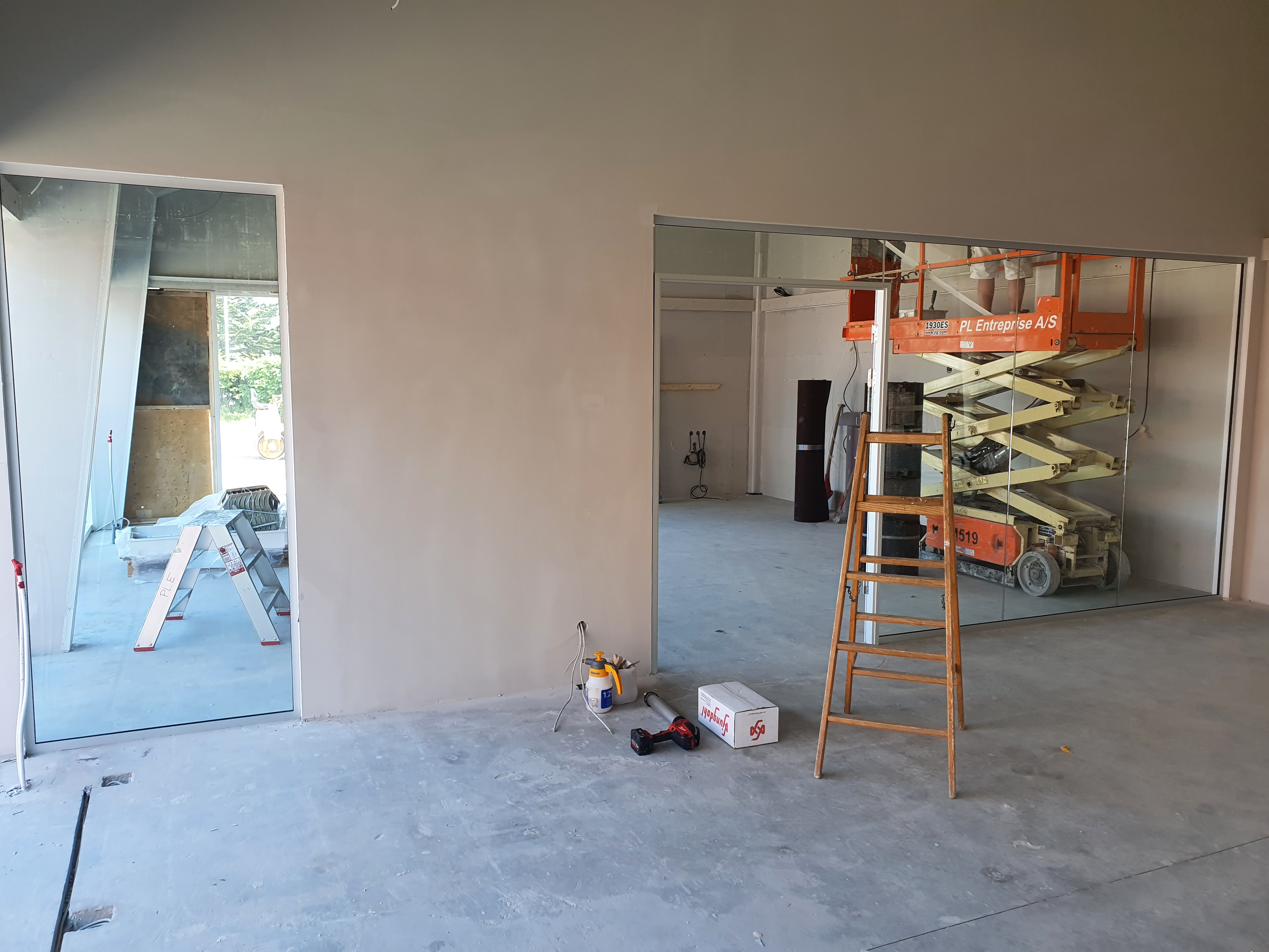 - 22. juni - vi er i fuld gang med at indrette rummene, efterhånden som de frigives. 3 dage til aflevering af bygningen.