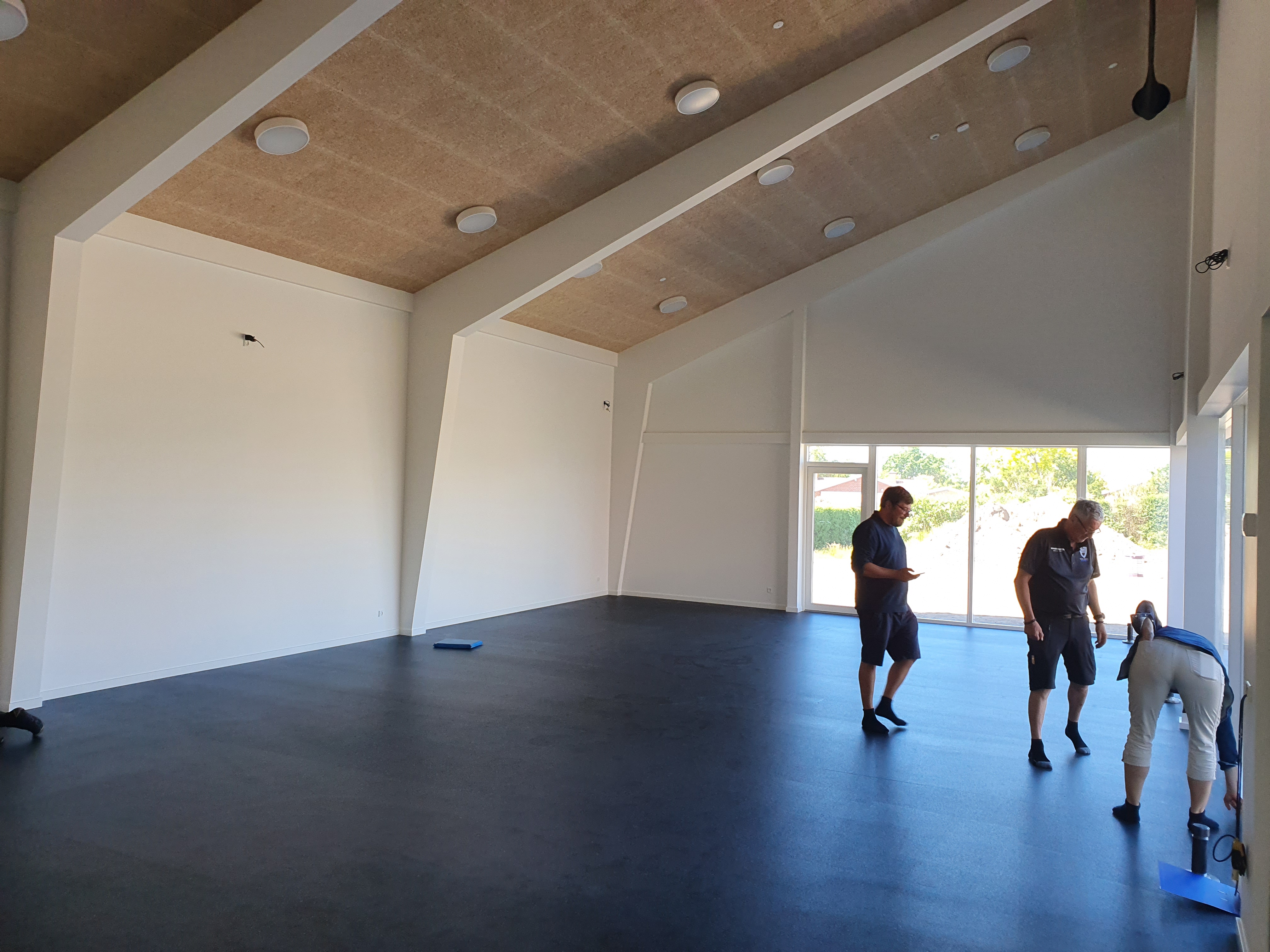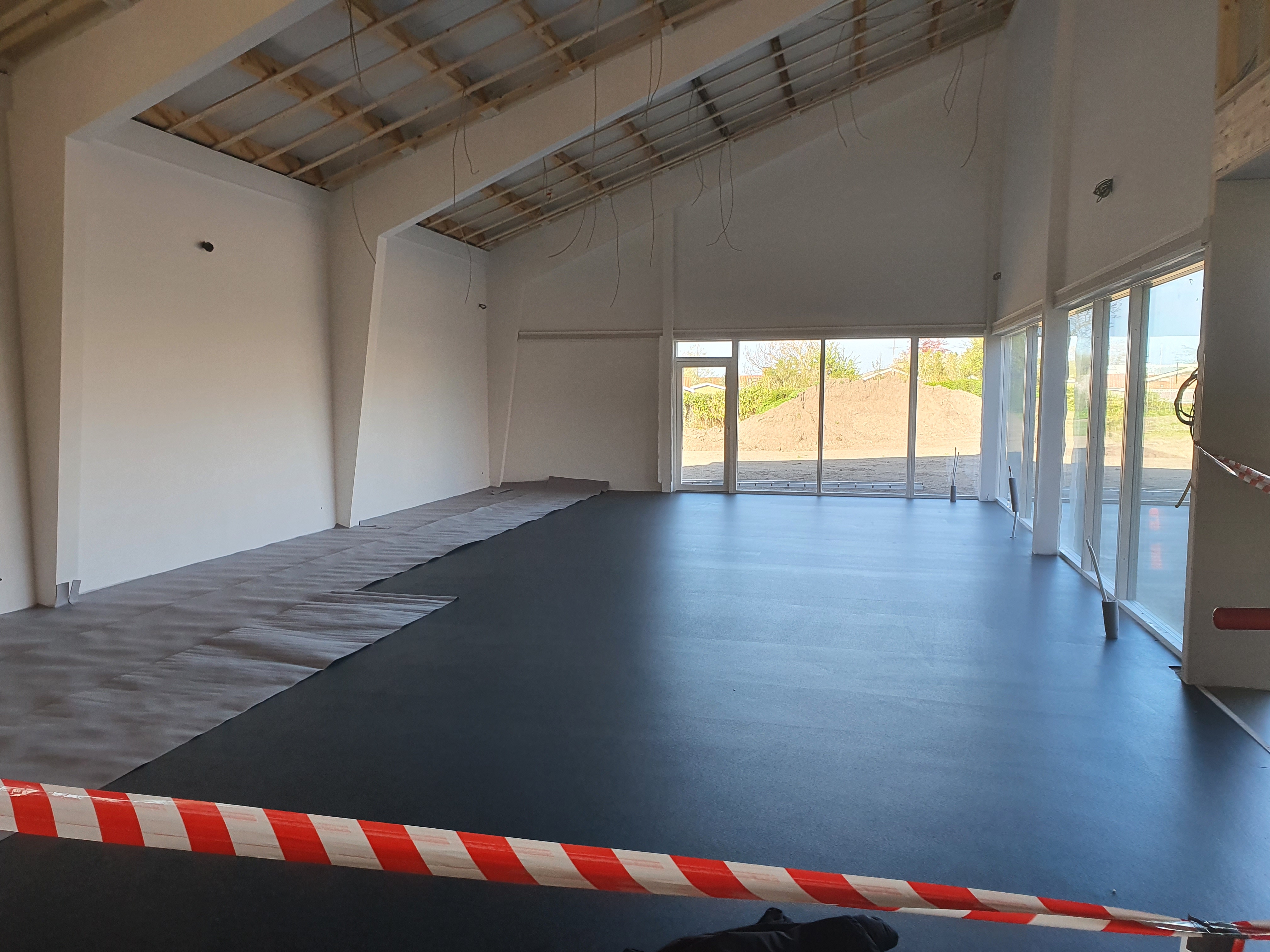 - 10. maj - der startes op på gulvbelægningen i de enkelte rum. Første sal der får nyt gulv er den 110 m2 store holdtræningssal.