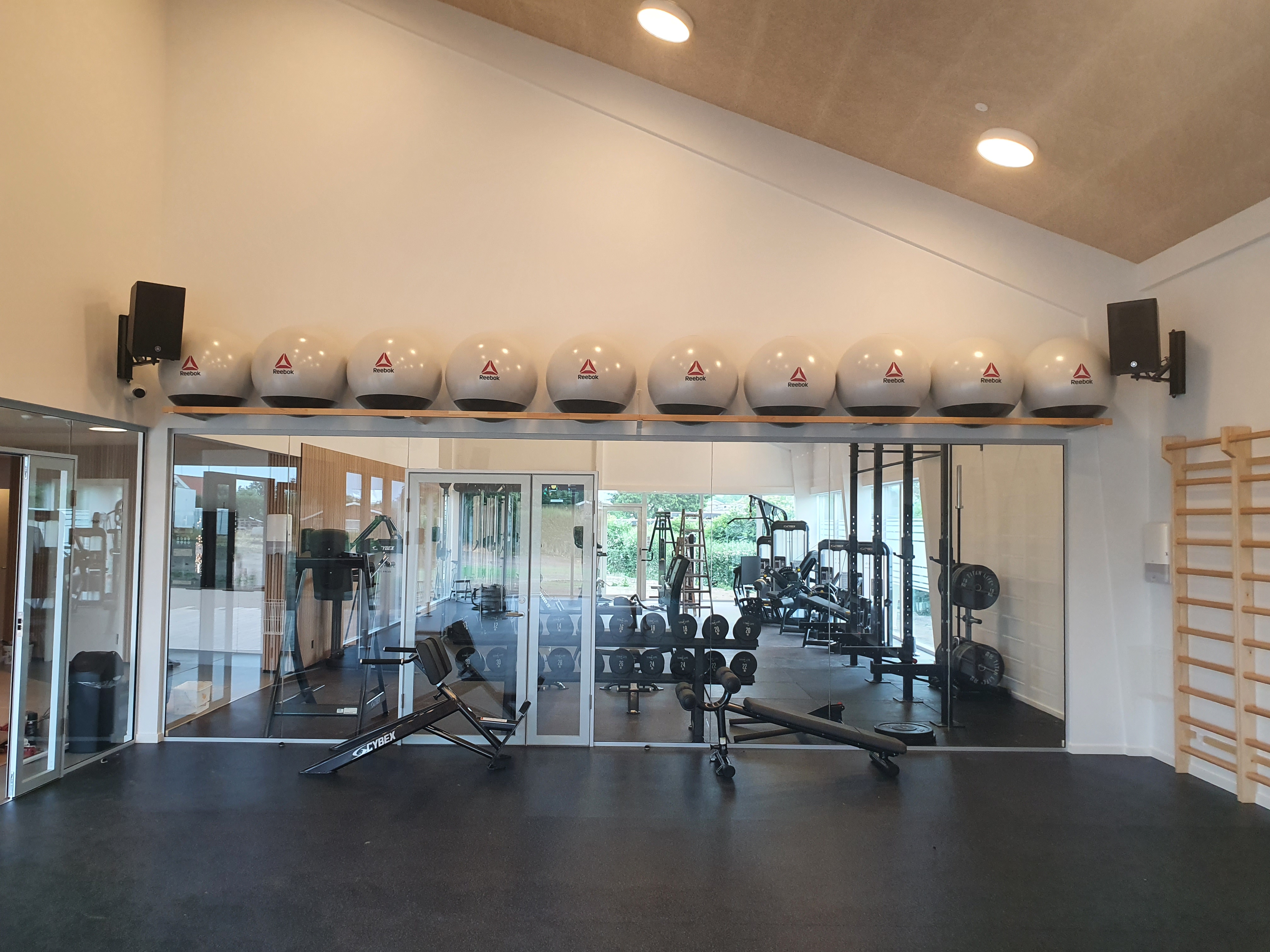- Gymnastiksal på 110 m2 til øvelser på gulv og holdtræning. Masser af udstyr til bl.a. crossfit
