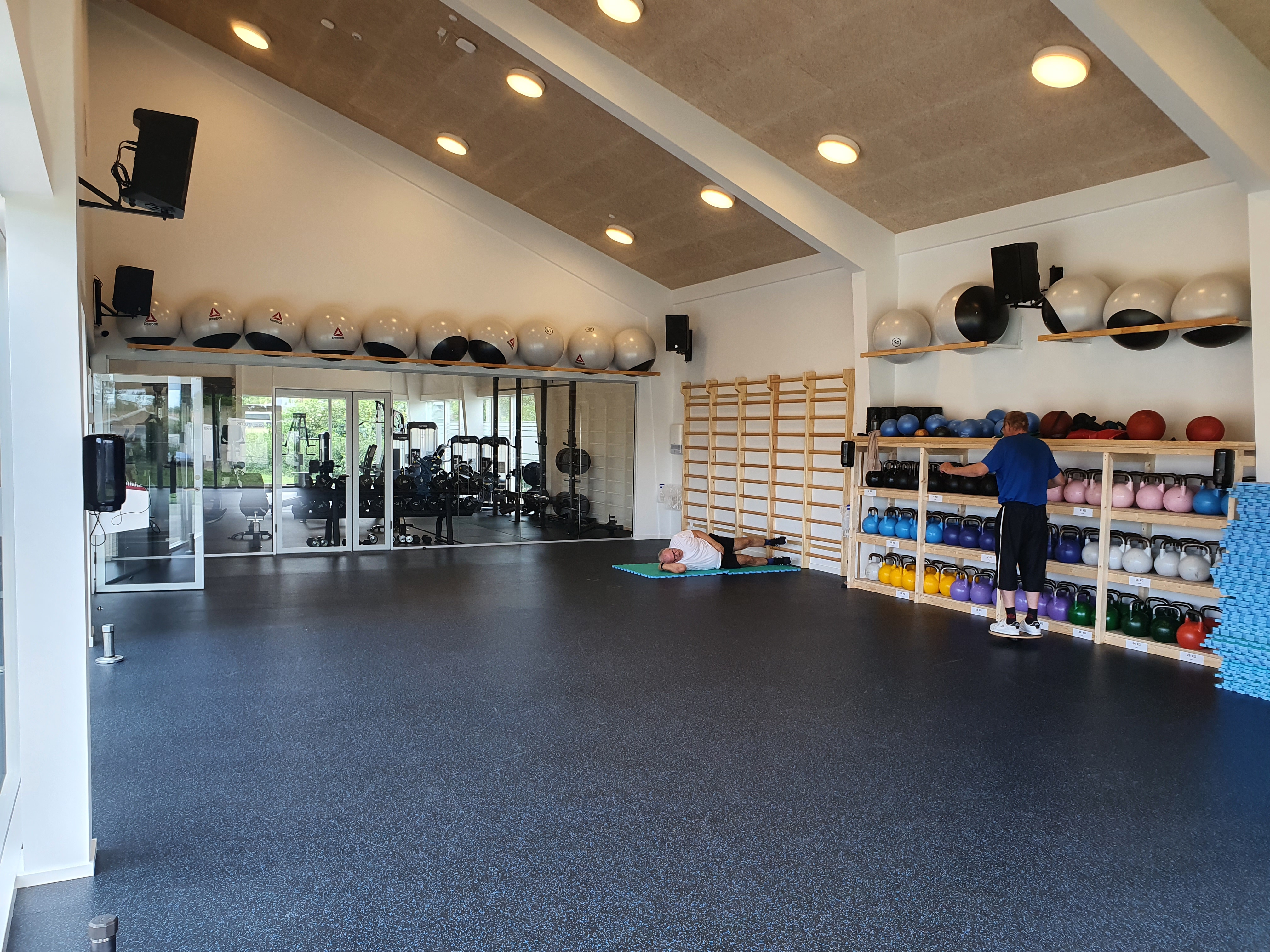 - Stor sal med cardio og styrketræningsmaskiner, ca. 150 m2.